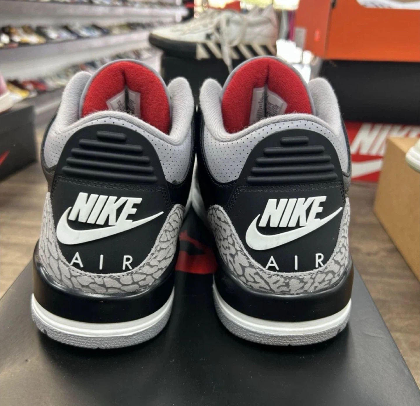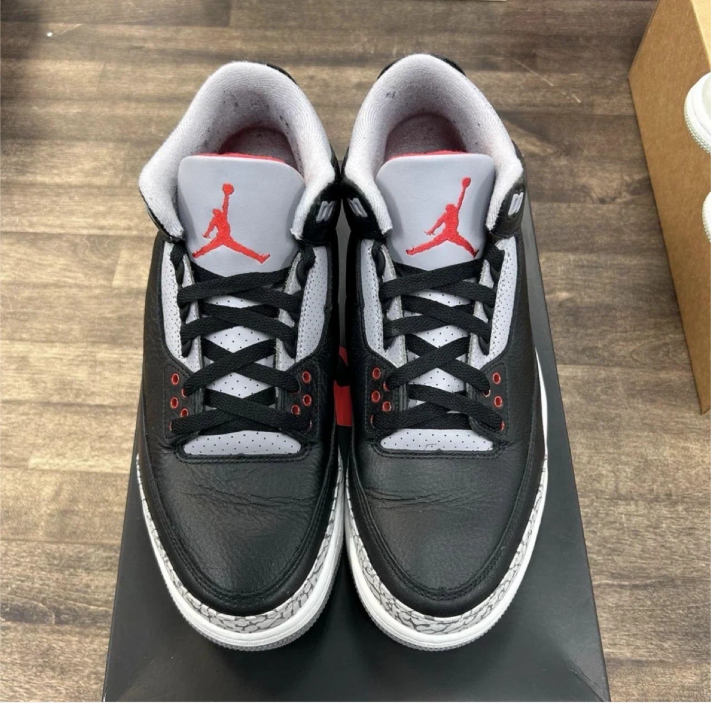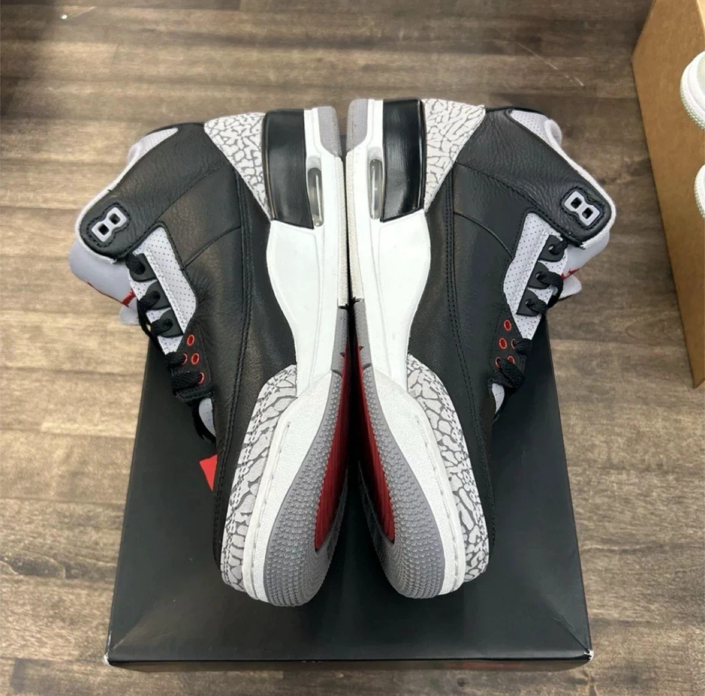 Selling a pair of Nike Air Jordan 3 Retro in the classic Black Cement colorway! These are in great condition and ready for a new home. The iconic elephant print and visible Air cushioning make them a standout pair of sneakers BRAND NEW (If you need another size lmk. that can be arranged) IF INTERESTED PLEASE DM ME BEFORE BUYING I CAN ONLY SHIP IN THE MOMENT ✨HMU FOR ANY OTHER SHOE ✨ (lowkey lazy to post all my other shoes)