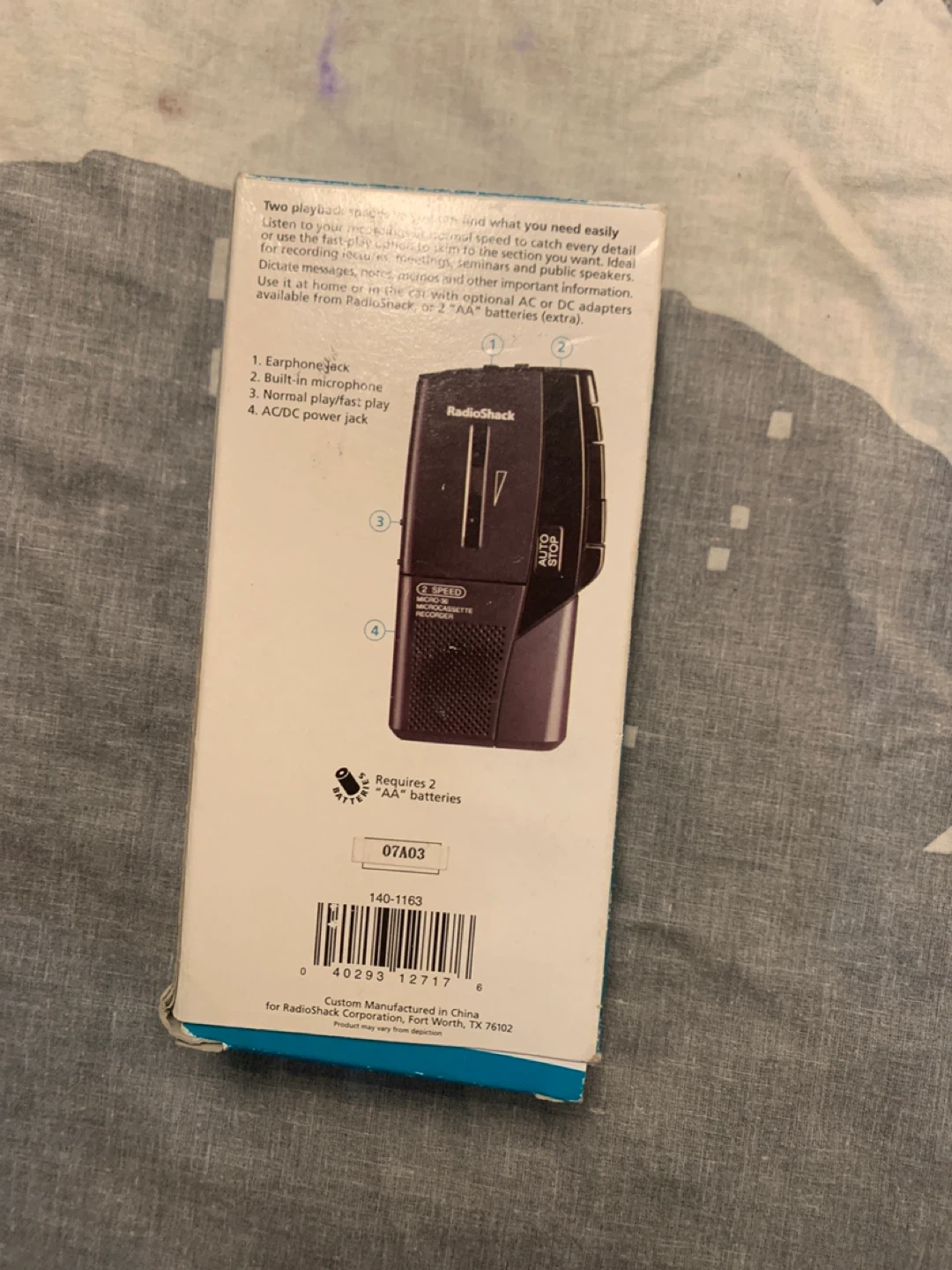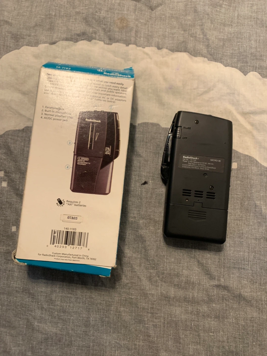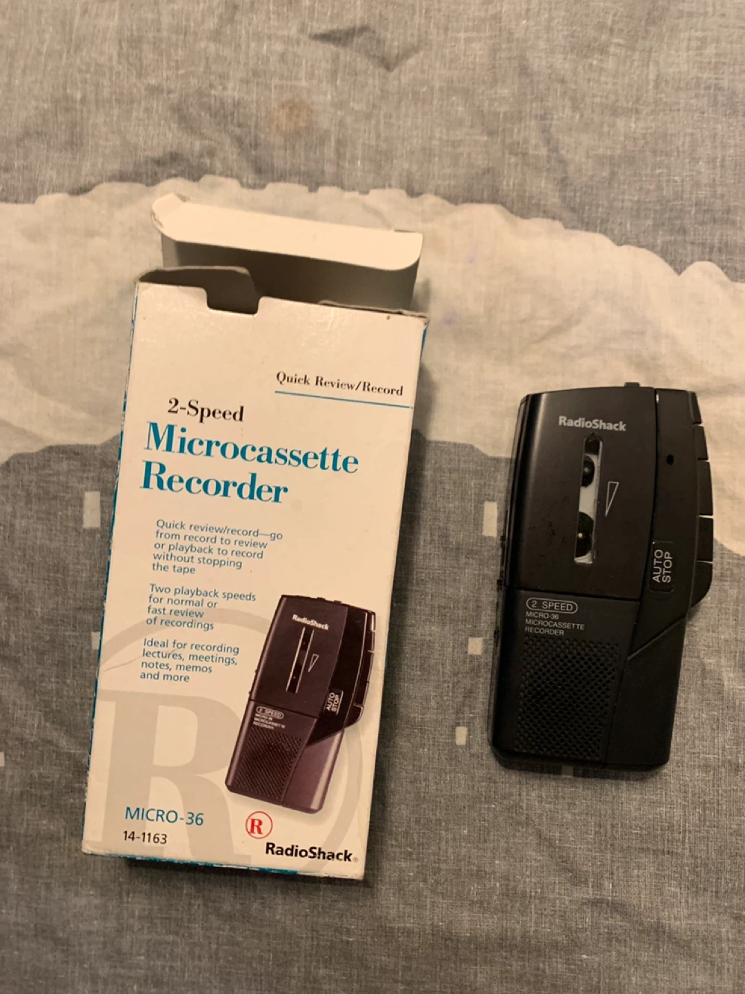 Selling a RadioShack 2-Speed Microcassette Recorder, model MICRO-36! It comes with its original box. This recorder is perfect for lectures, notes, memos, and more. It has two playback speeds for normal or fast review. Requires 2 AAA batteries.