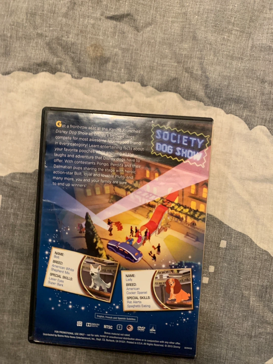 Selling a Disney Dog Show DVD. It's a fun DVD for the whole family to enjoy, with lots of laughs and adventure that Disney dogs have to offer. With contestants Pongo, Perdita and their Disney pups sharing the stage with heroic action-star Bolt, and lovable Pluto and many more, you and your family are sure to end up winners!