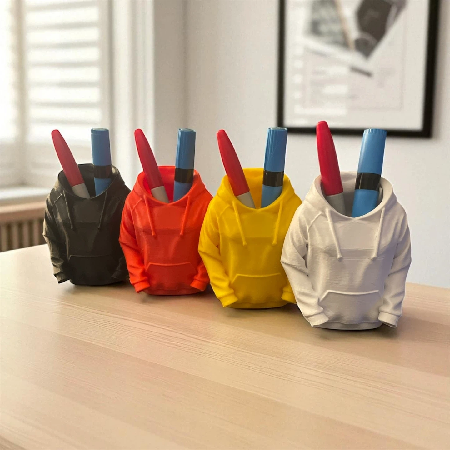 These fun hoodie-shaped pen holders are perfect for adding a bit of personality to your desk! They come in several colors: black, red, yellow, white. They're great for holding pens, pencils, or even small art supplies. Add a playful touch to your workspace! $5 each pick a color.