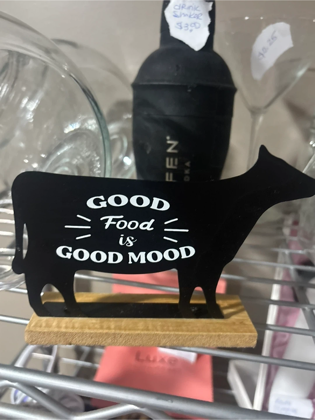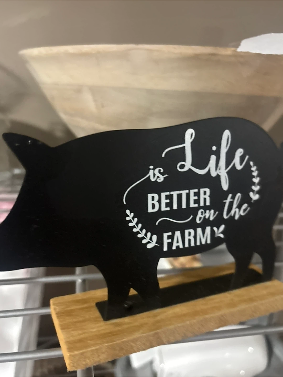 20Set of Two cute farmhouse-style animal decorations! One is a cow that says "Good Food is Good Mood" and the other is a pig that says "Life is Better on the Farm" They're perfect for adding a touch of rustic charm to your kitchen or any room in your home Shelf or countertop sitters
