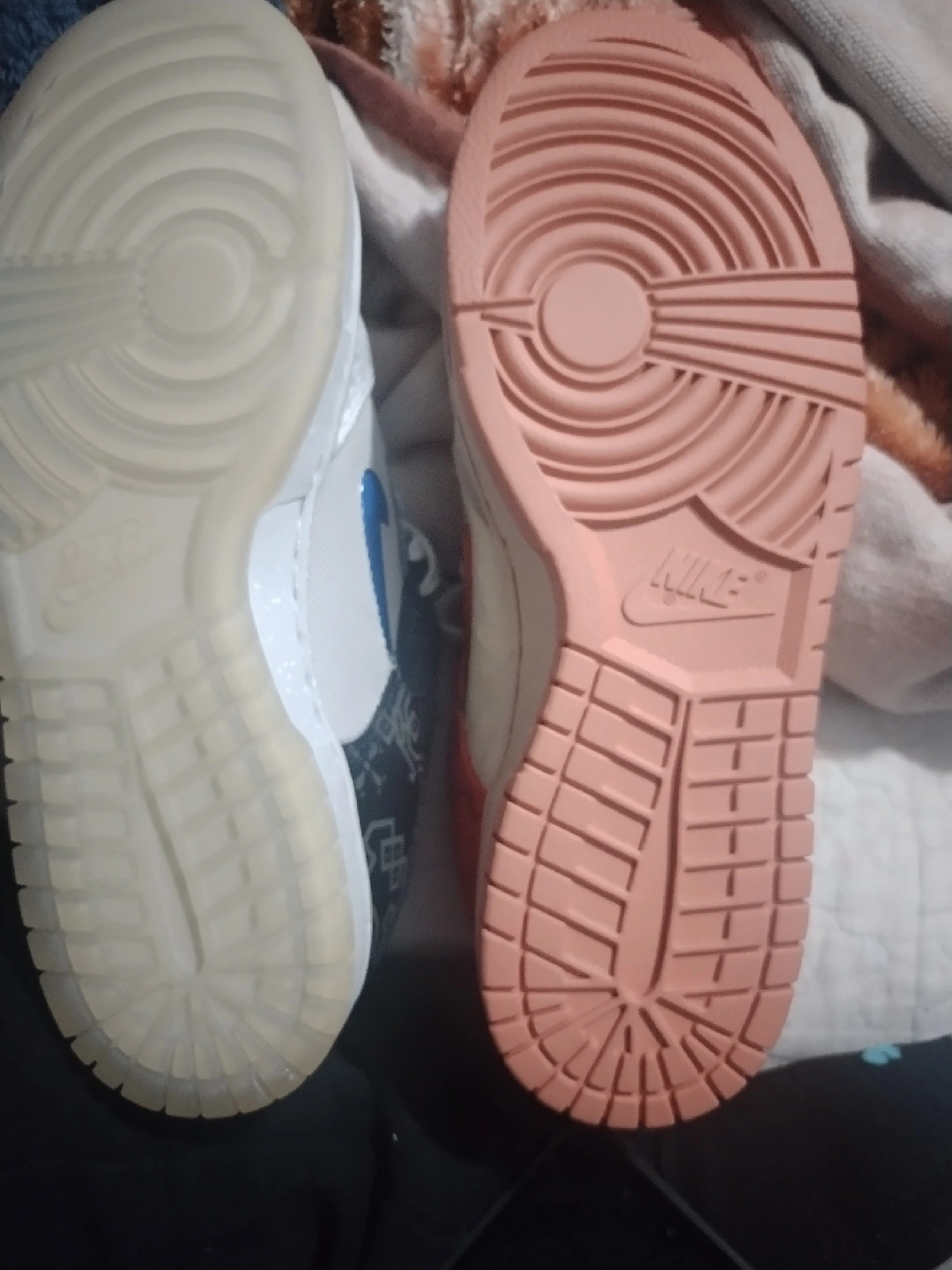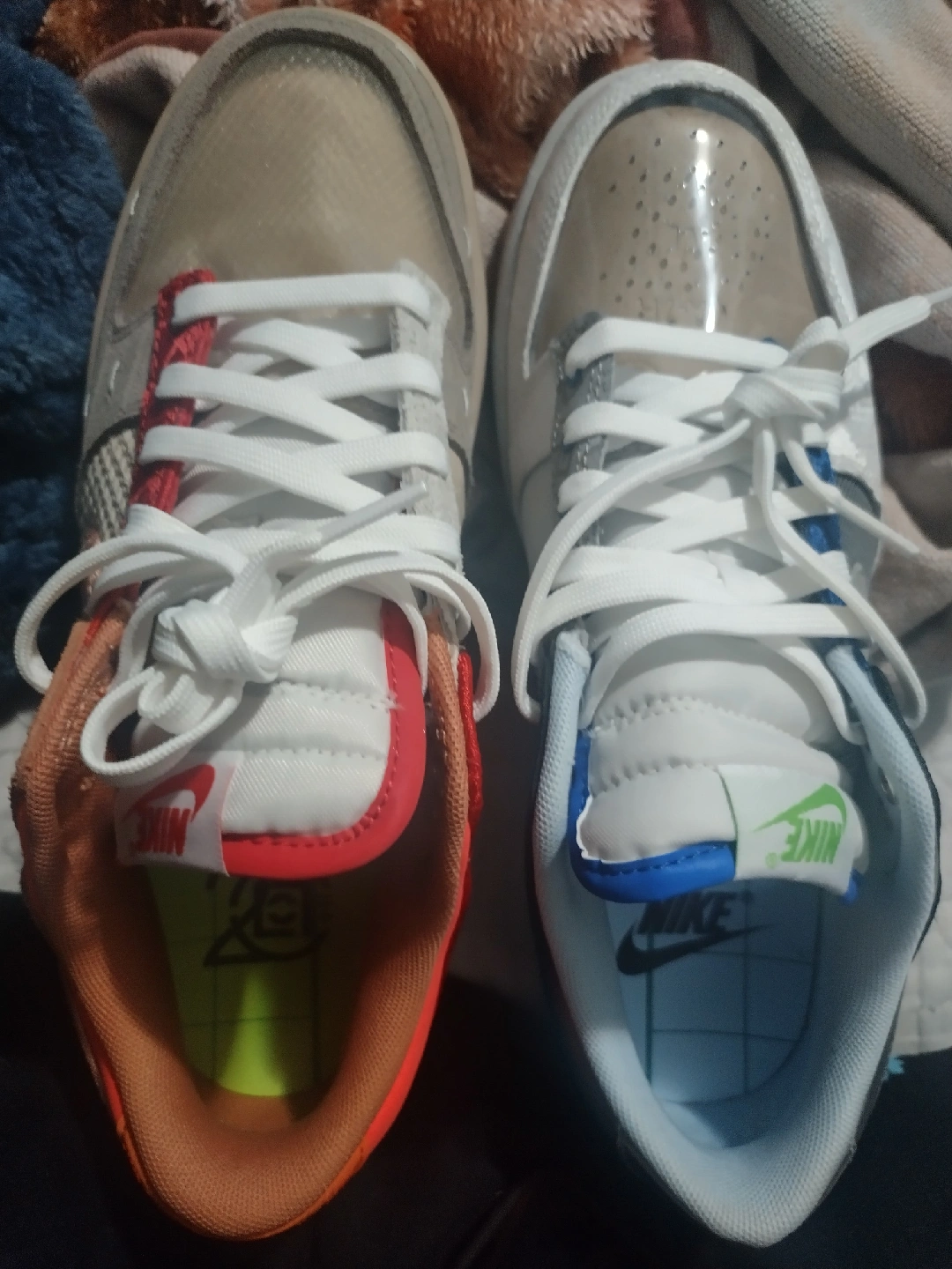 Selling a pair of Nike Dunk Low SE Lottery Pack sneakers in Grey Fog and Pale Ivory! These are mismatched colorways, adding a unique touch. Comes with the original box! (blue ) side is see through