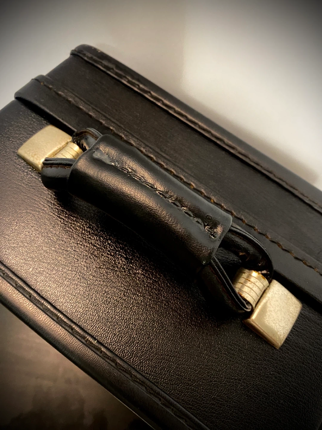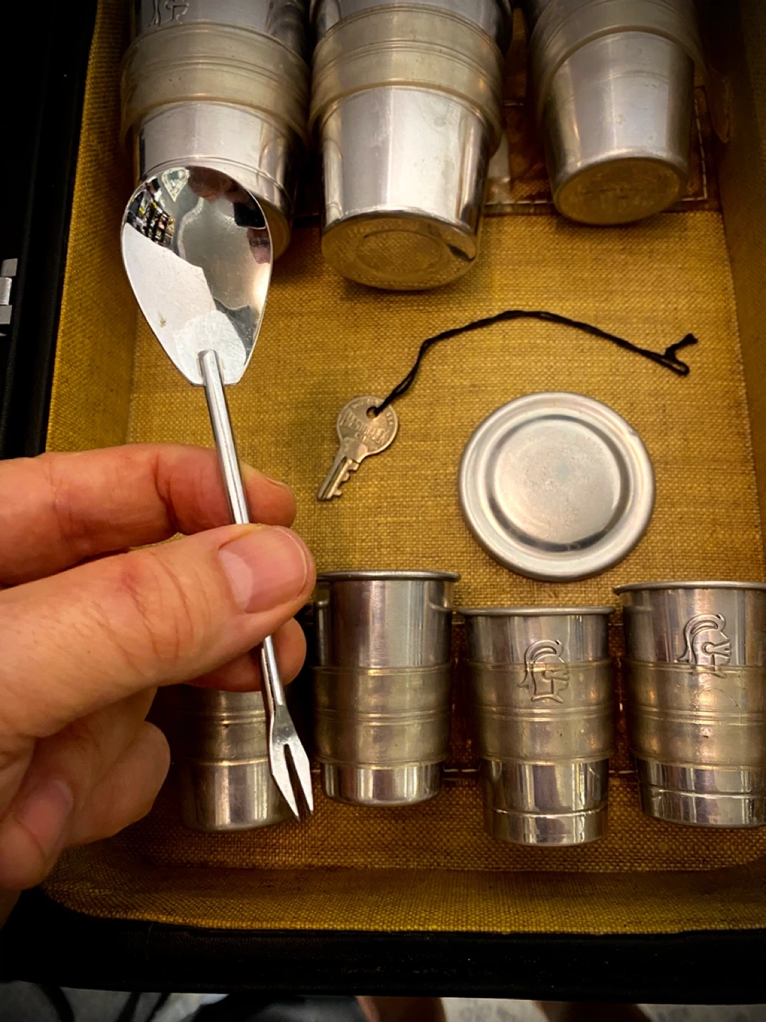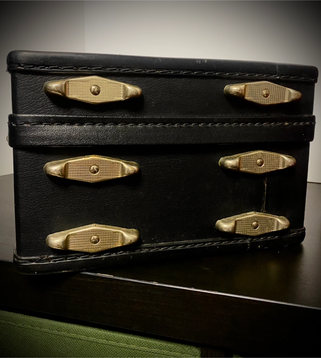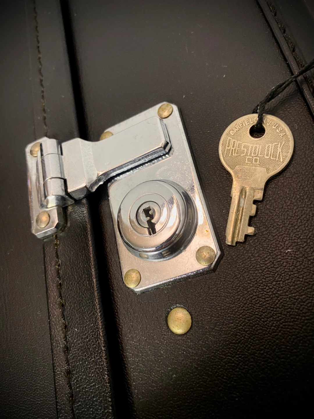 Cool find!!! Selling a vintage MCM black bartender travel case! It features a handle, a locking mechanism with a key, (it works!) and interior compartments for storing bar tools. The case includes metal shot glasses and cocktail cups. Perfect for a vintage bar ware collector or someone who enjoys making cocktails on the go!