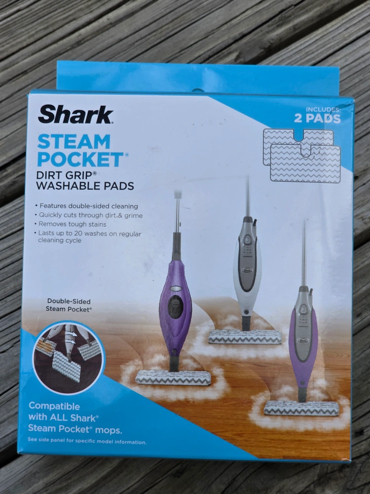Selling a Shark Steam Pocket mop! It features double-sided cleaning and quickly cuts through dirt and grime. Removes tough stains and lasts up to 20 washes on a regular cleaning cycle. Compatible with all Shark Steam Pocket mops and includes 2 pads Pick up in Naperville near naper blvd and 87th street or near downtown Naperville off of Chicago and Charles