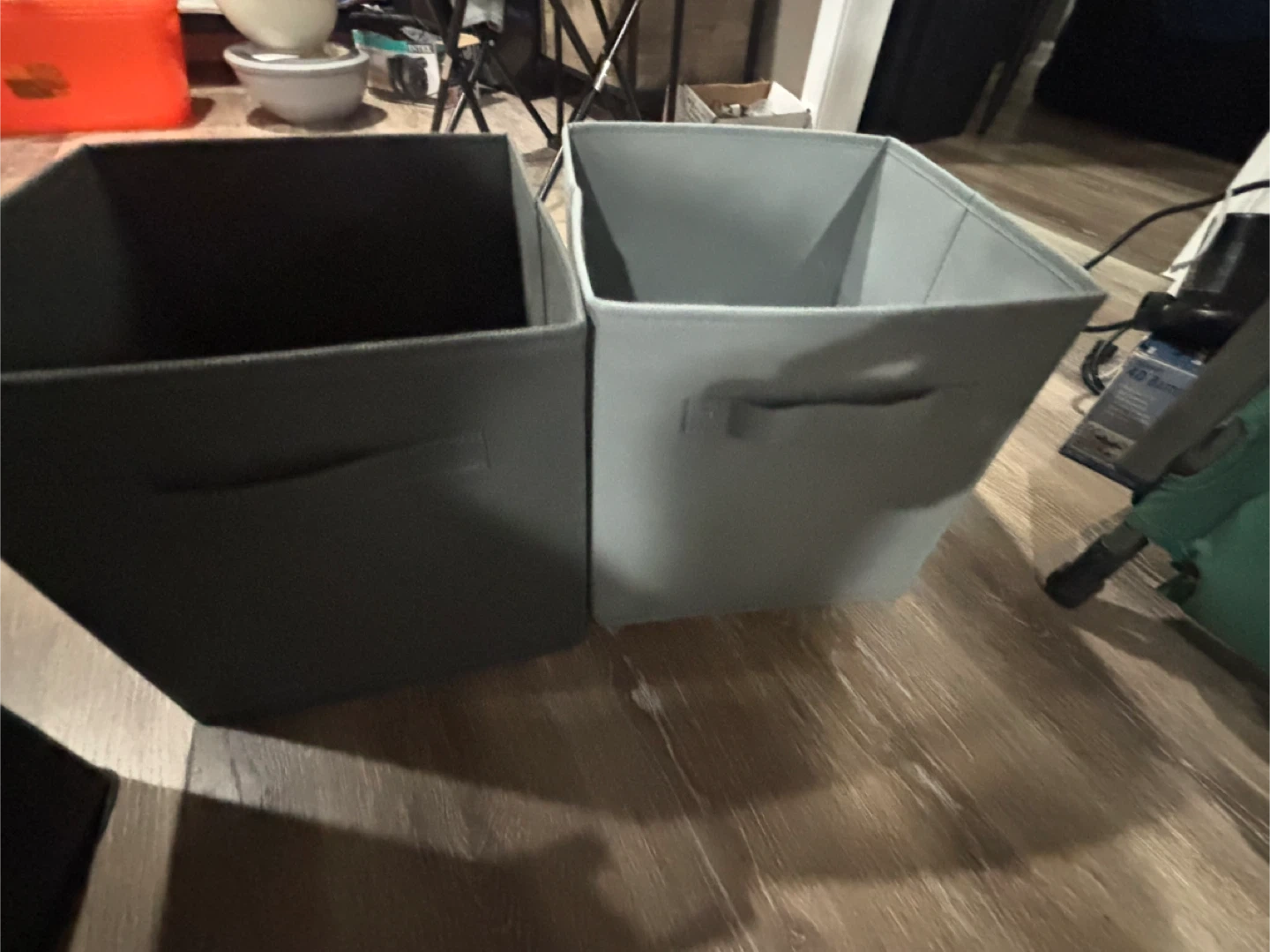 20Selling six (3 each color) storage bins, one gray and one light gray. They're in good condition and ready to help you organize! Mainstays Collapsible Cube Fabric Storage Bins (10.5" x 10.5"), 6 Pack, Gray Flannel
