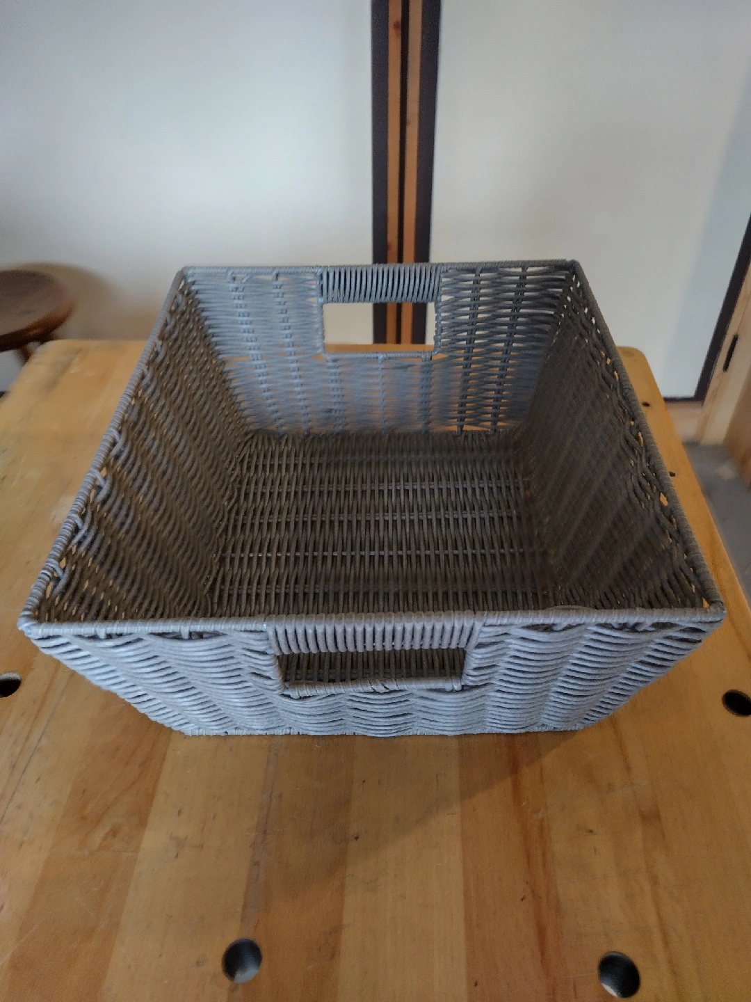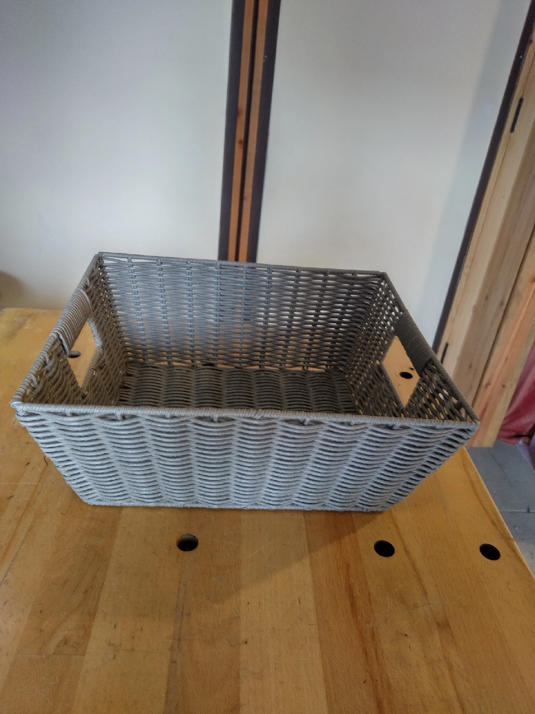 60I'm selling a gray woven storage basket. It's in great condition and ready for a new home! Perfect for organizing your space or adding a touch of style to any room