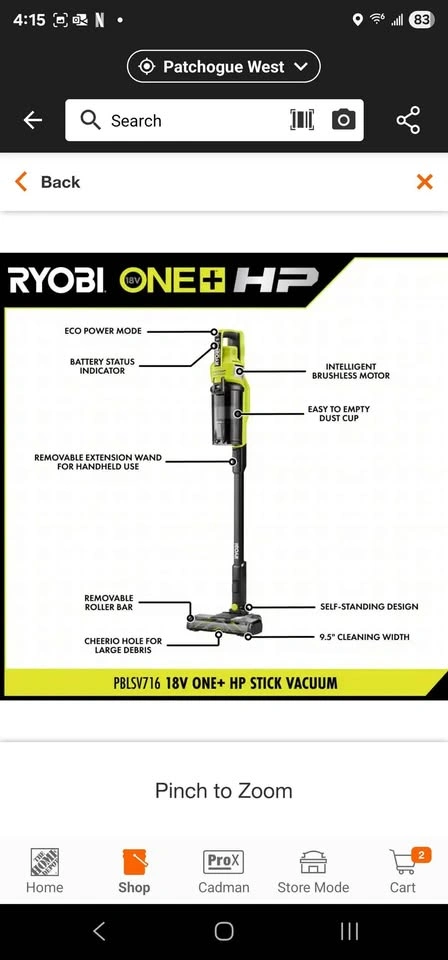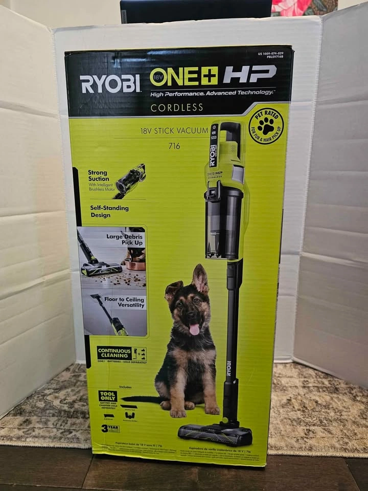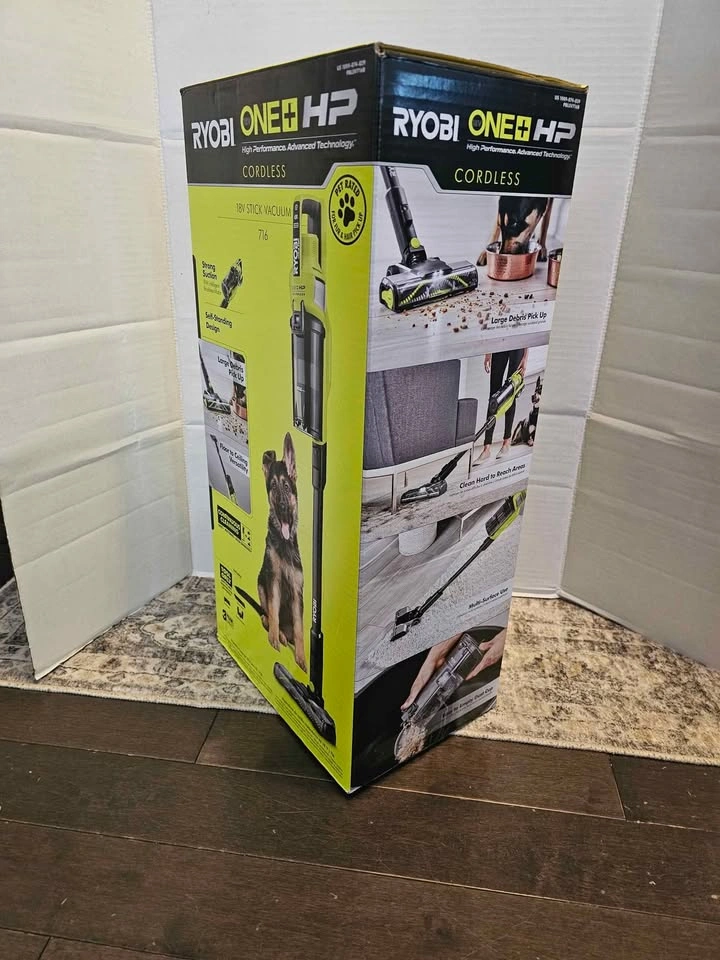 Brand new in box. Photos of the box have been posted. This is one of several which are all brand new and unopened. The RYOBI 18V ONE+ HP Stick Vacuum provides cordless convenience for floor-to-ceiling cleaning. ONE+ HP Technology delivers more power, runtime, durability and speed utilizing an intelligent brushless motor, advanced electronics and HIGH PERFORMANCE lithium technology for tackling dirt and pet hair. This stick vacuum stands on its own for ultimate user convenience. LED lights on the roller bar illuminate dust, dirt, and hair while the easy to empty dust cup and removable roller bar allow you to quickly maintain your vacuum. By removing the extension wand, you now have a hand vacuum for cleaning messes in cars, on stairs, on delicate surfaces, and in tight spaces with the included accessories. The crevice tool is perfect for cleaning in hard-to-reach areas while the dust brush is your go-to for delicate surfaces. Easily replace your filters and roller bars for uninterrupted performance. Best of all, it is part of the RYOBI ONE+ system where any 18V ONE+ battery works with any 18V ONE+ product.