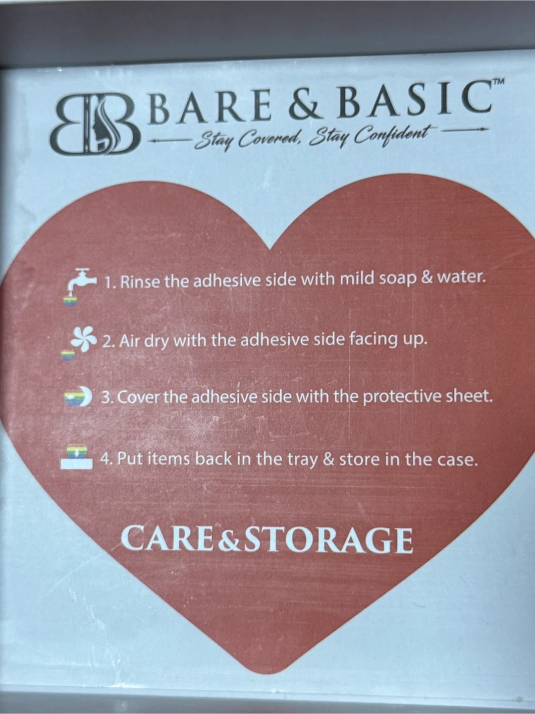 Selling a pair of Bare & Basic Love&Pride Nipple Covers. They are adhesive and come in the original packaging. Care and storage instructions are included on the box: rinse the adhesive side with mild soap & water, air dry with the adhesive side facing up, cover the adhesive side with the protective sheet, and put items back in the tray & store in the case. I tried them once and realised they’re for bigger boobs/nipples than mine 🤷♀️