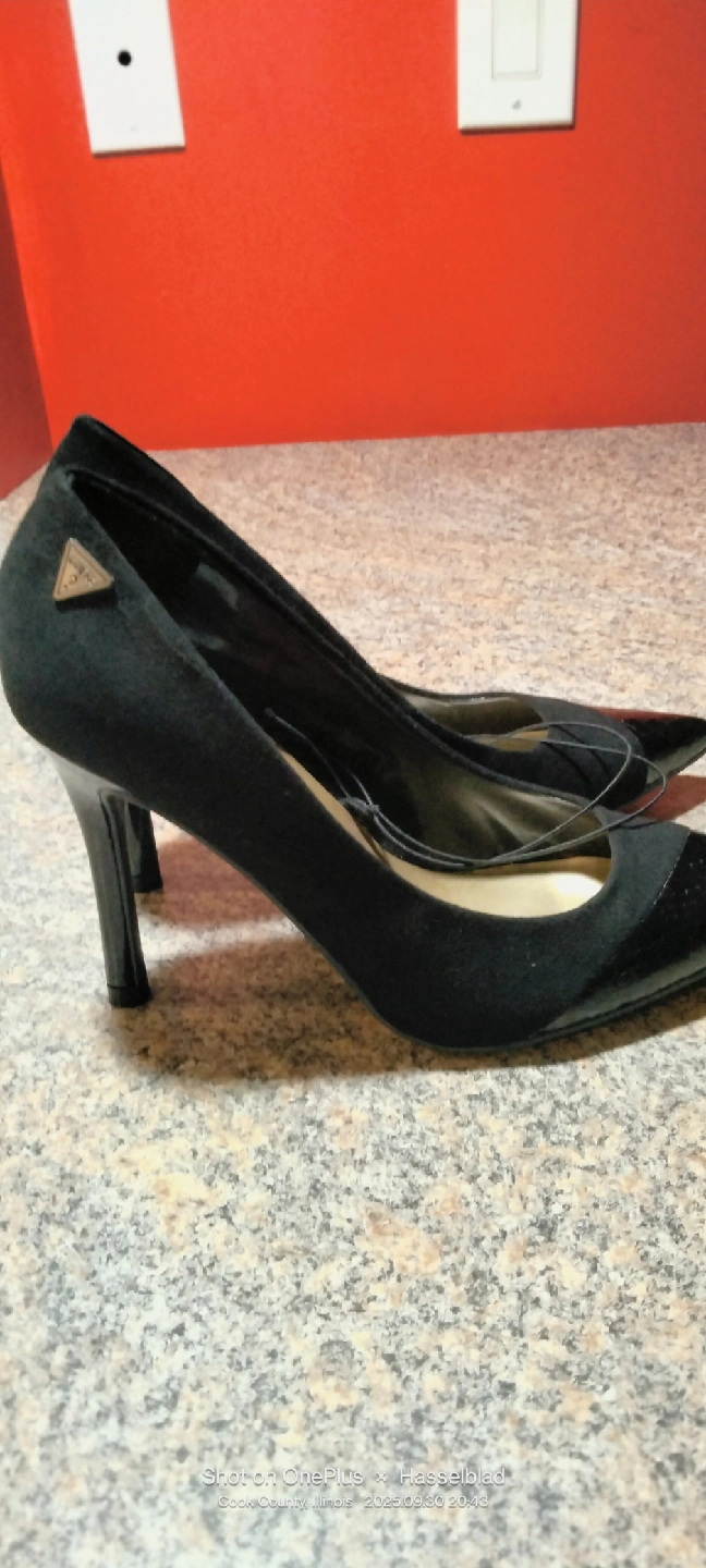 Guess black heels in size 6.5. They are about 4 inches tall and feature a snakeskin-like texture on the toe. New with tag no box.