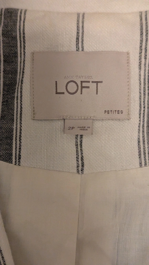 Ann Taylor LOFT blazer in a petite size 2! It features a stylish striped pattern and a double-breasted design.