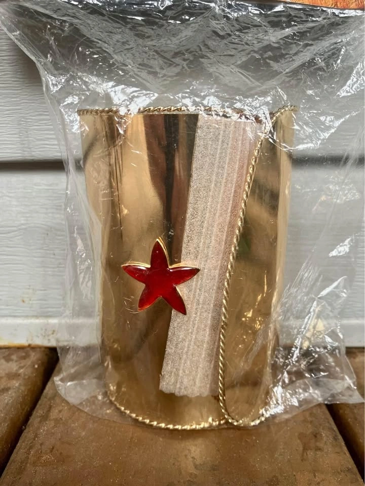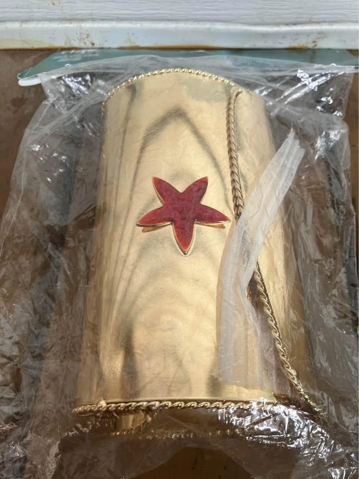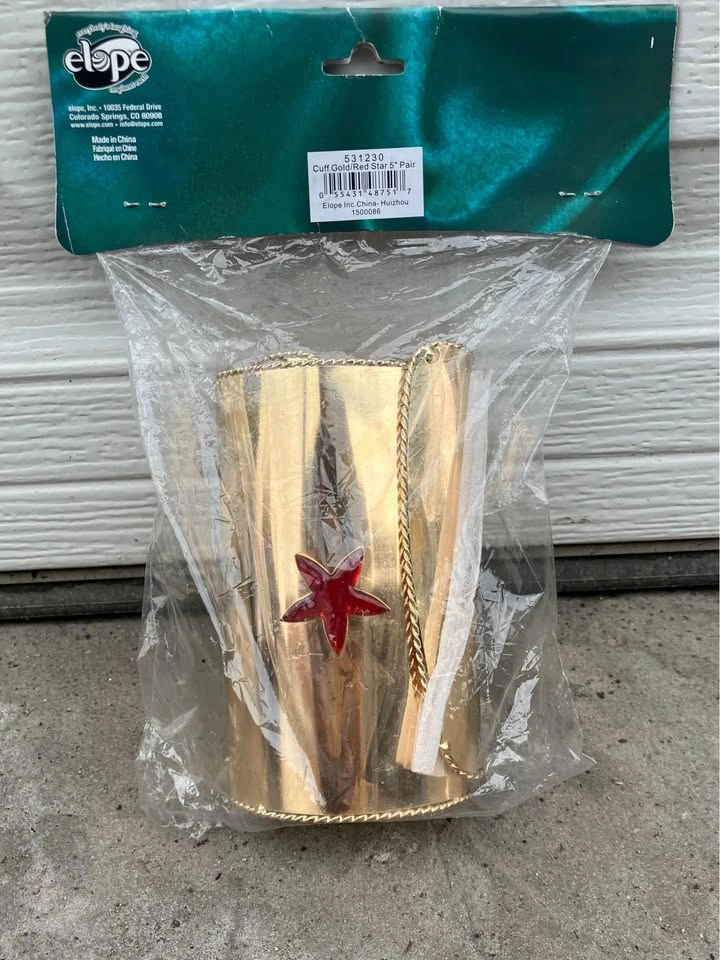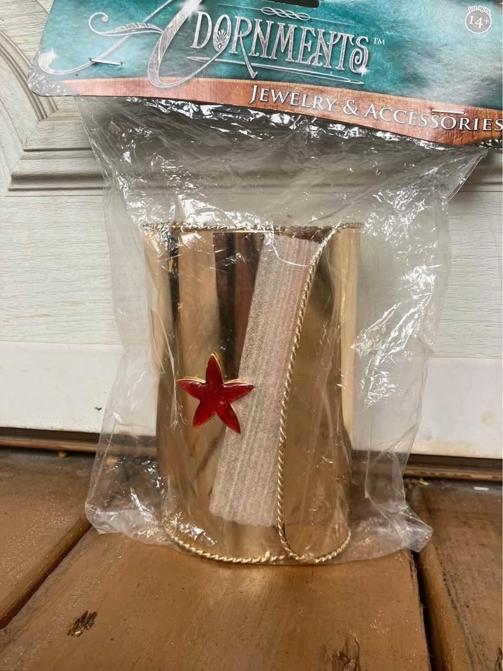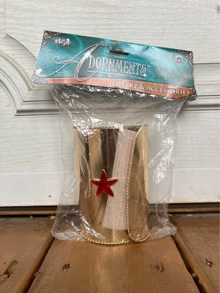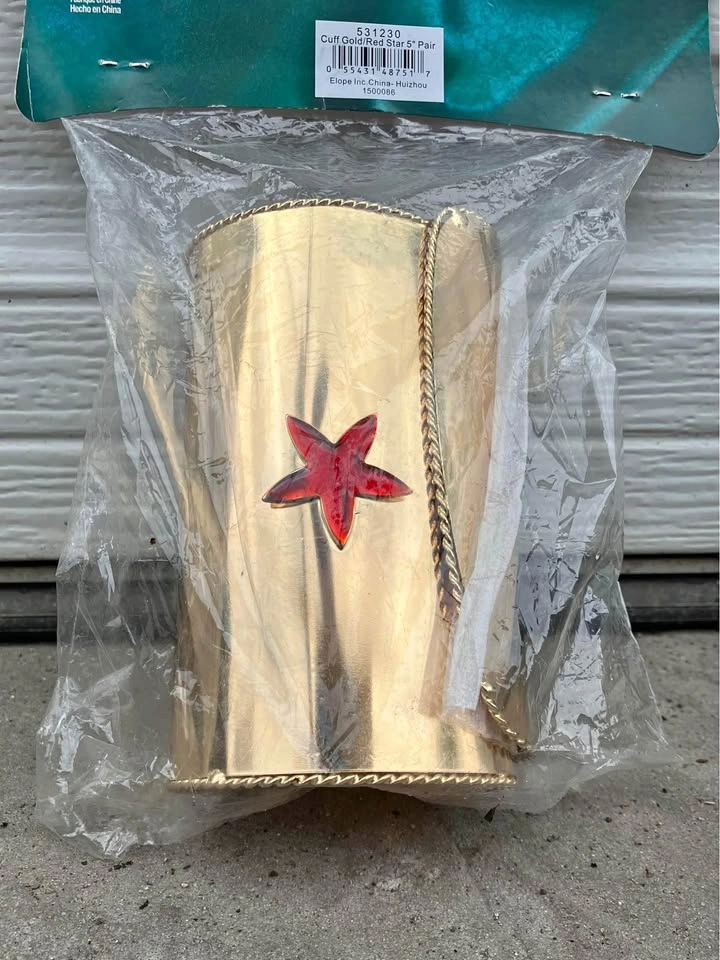 One size fits most Wonder Woman cuffs. Metal cuffs are 5” long with the red star in the middle. For ages 14+. Brand new in the original packaging. From a smoke and pet free home. Check out in person before purchasing. Thanks for looking.