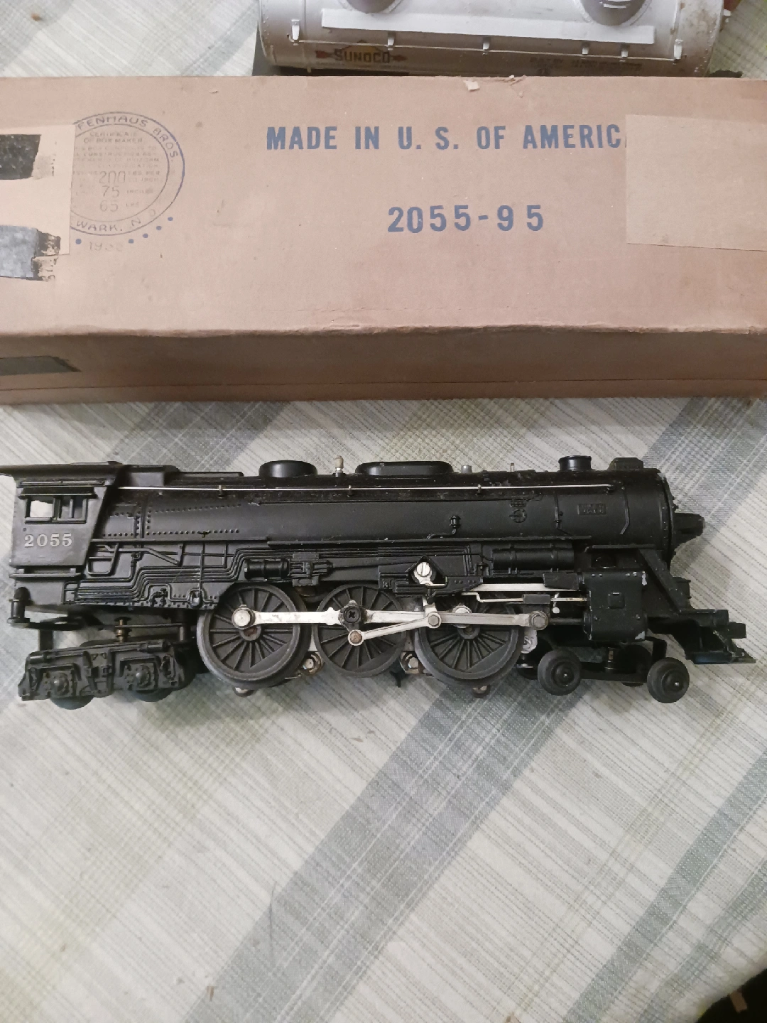 Selling a vintage Lionel 2055 steam locomotive. The box says "Made in U. S. of America" and has the number 2055-95. A great addition to any train collection!