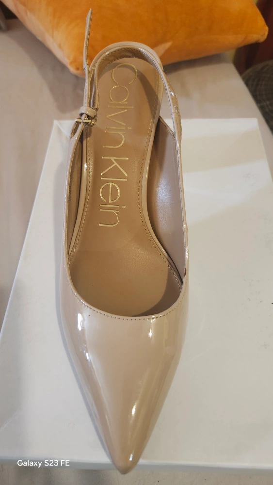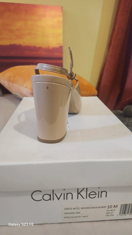 Selling a pair of Calvin Klein Gayle slingback heels in size 10M. They're a beautiful neutral color and feature a raffia/nap upper. The shoes are in good condition and come with the original box