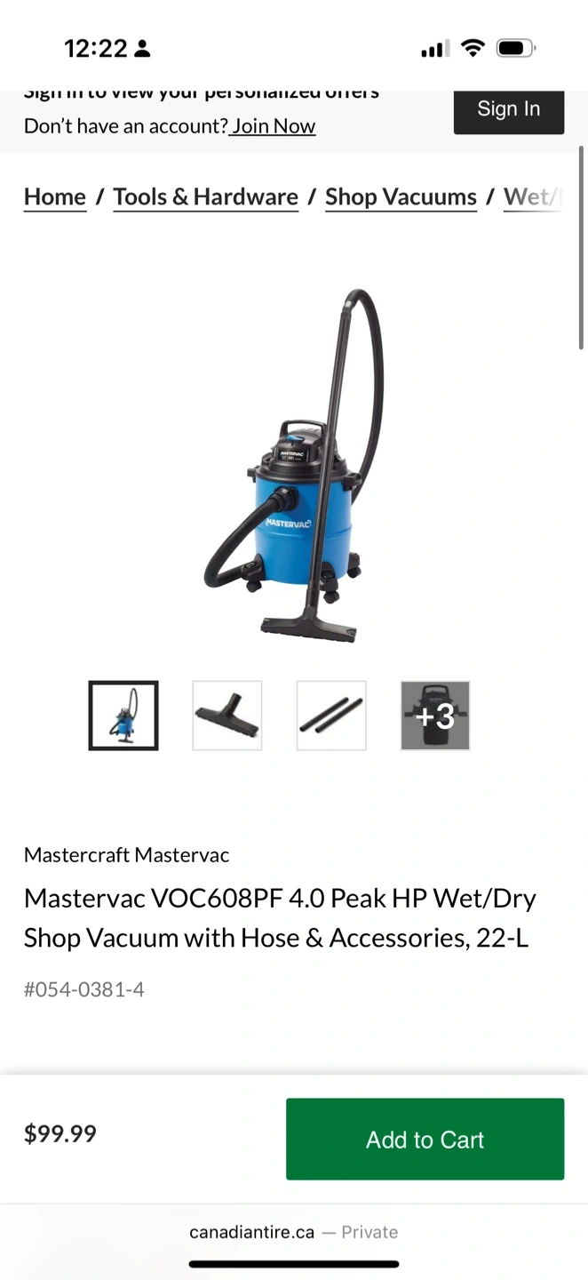 1000+Selling a Mastercraft Mastervac VOC608PF 4.0 Peak HP Wet/Dry Shop Vacuum with Hose & Accessories, 22-L Originally bought for $99.99 Brand new in box
