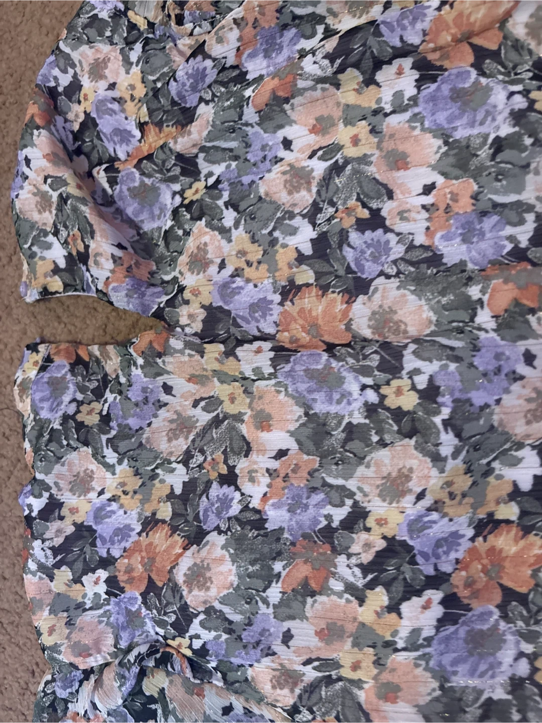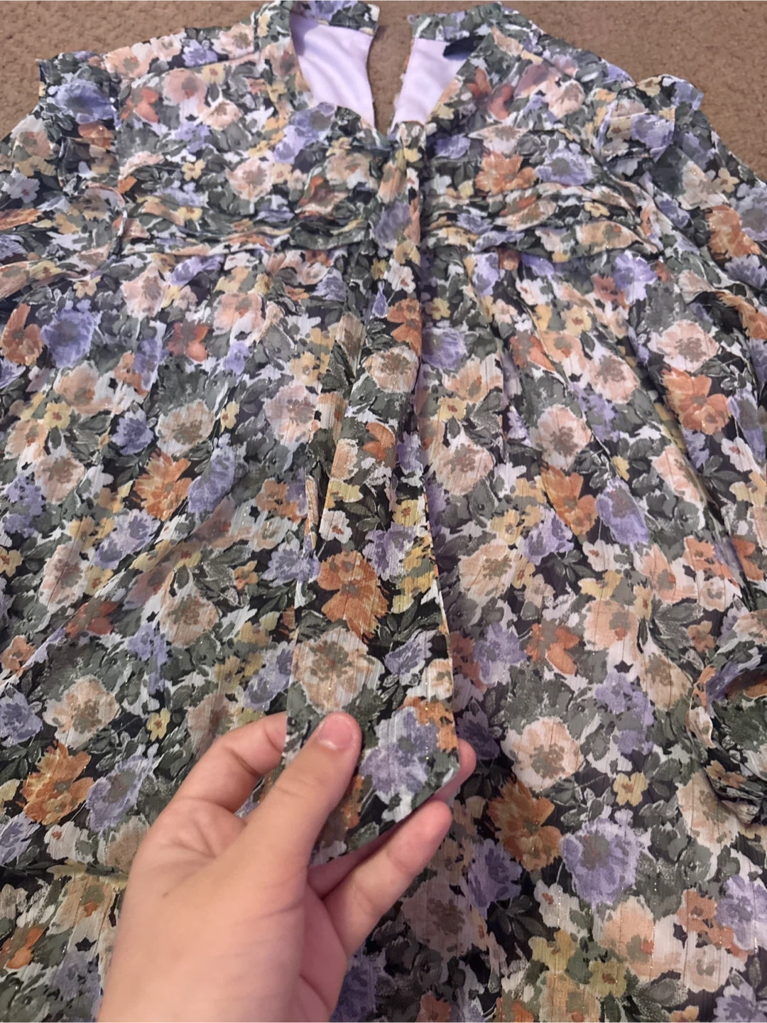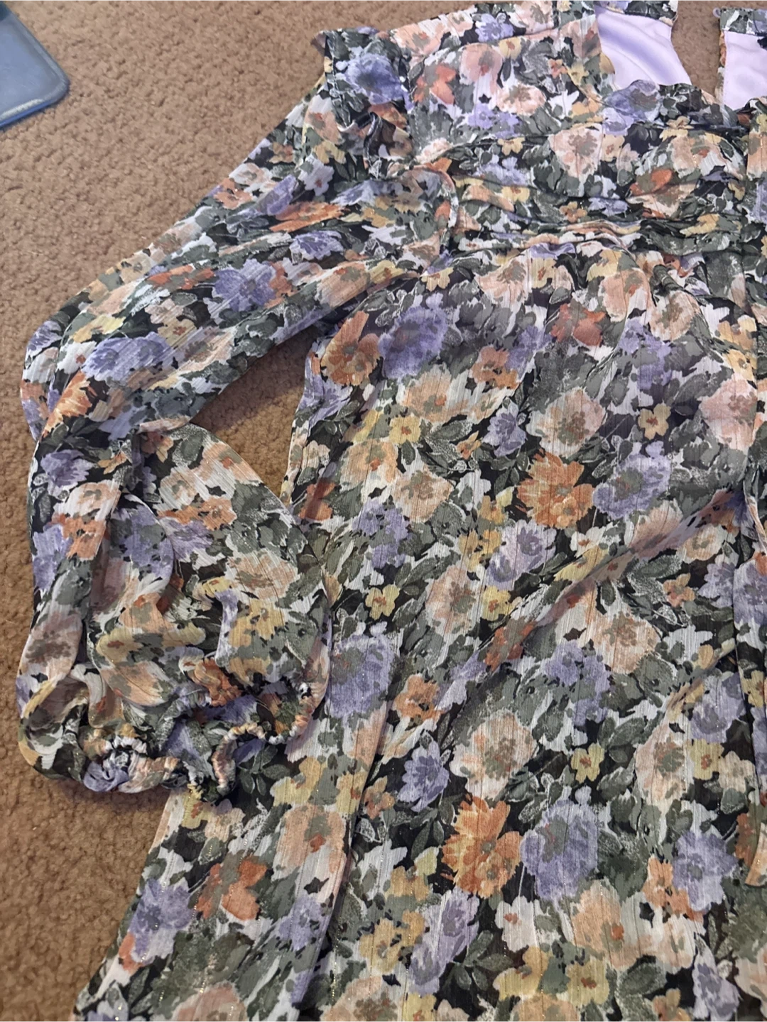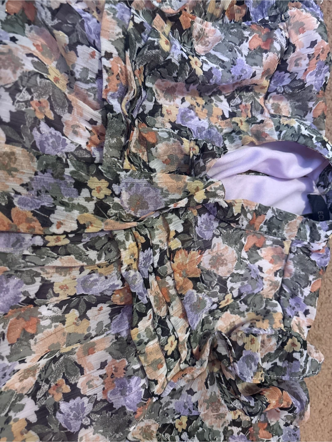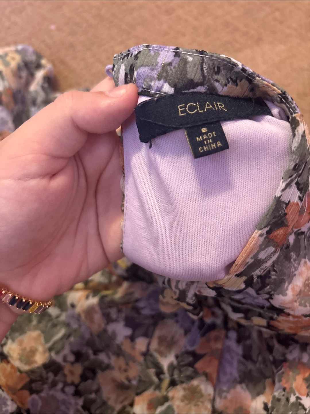 10This is a cute Eclair dress with a beautiful floral pattern! It features long sleeves and is a size small. Perfect for any occasion!