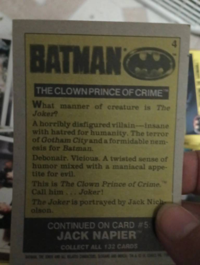 Selling Batman 1989 trading cards! These cards feature iconic scenes and characters from the movie.