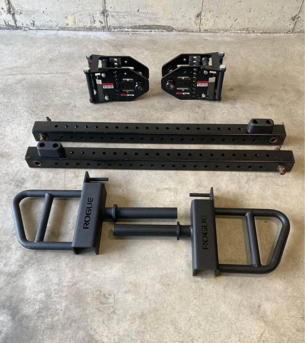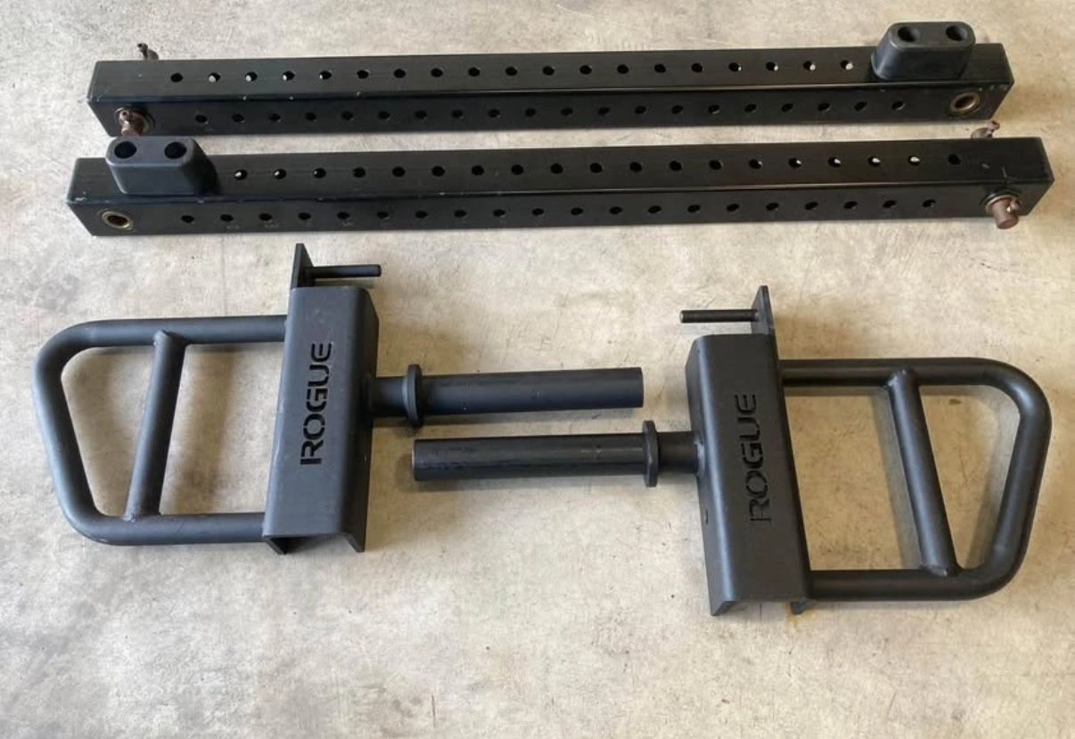 15Missing 4 rollers, but they are easily replaceable. Bought or DIY would work just fine. PVC pipe, screen printed, wood dowel… Even Pins would work. Otherwise everything is in phenomenal condition and works perfectly. Stations: Power rack Brand: Rogue fitness