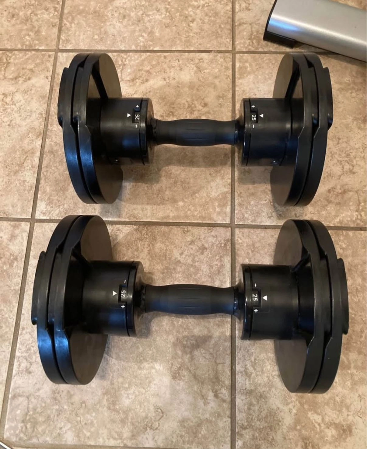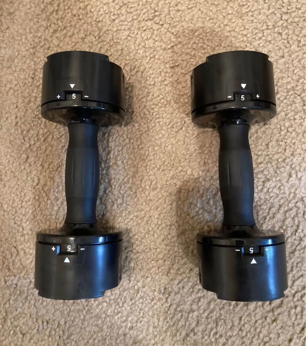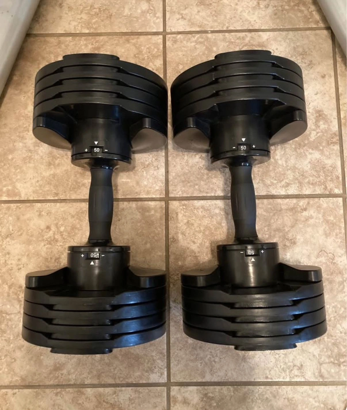 15Core Home Fitness Adjustable Dumbbells in phenomenal condition. They go from 5 pounds to 50 pounds in 5 pound increments. Comes with the stand. Very cool style and design and feel. Almost like using a regular set of pro style gym dumbbells, not bulky at all. One of the top rated adjustable dumbbells on the market. They sell out a lot.