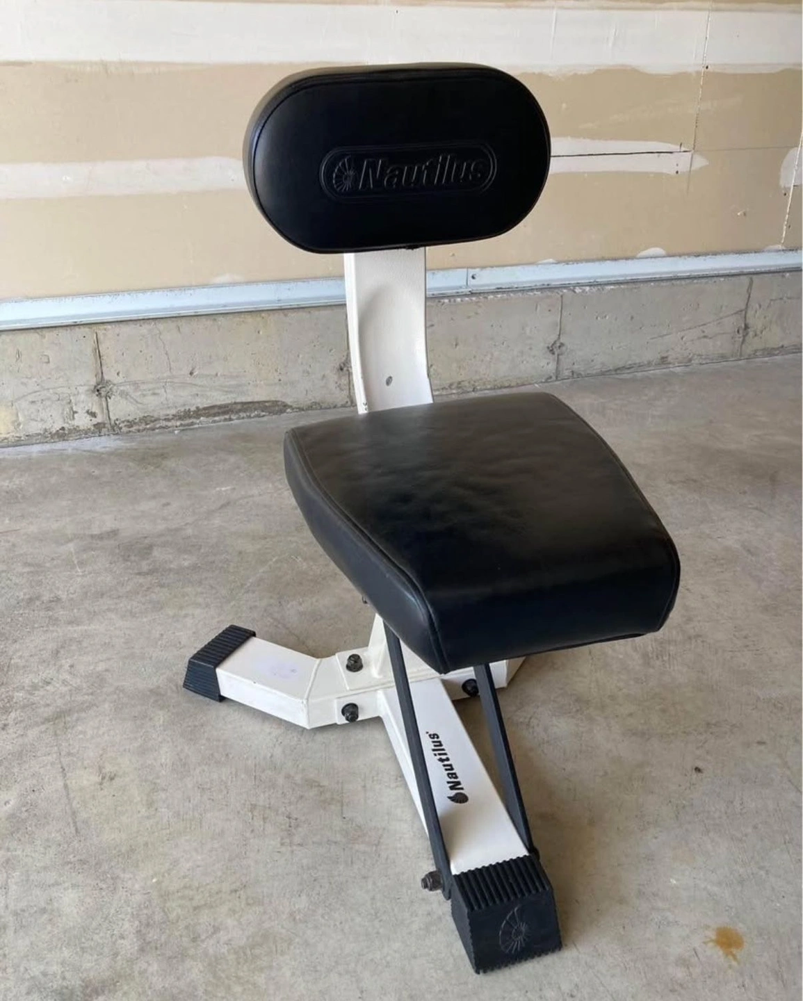 15Nautilus commercial quality Seated utility weight bench for the gym. Sturdy, solid and in excellent condition. The Pads are Pristine! Stations: Shoulder press Brand: Nautilus