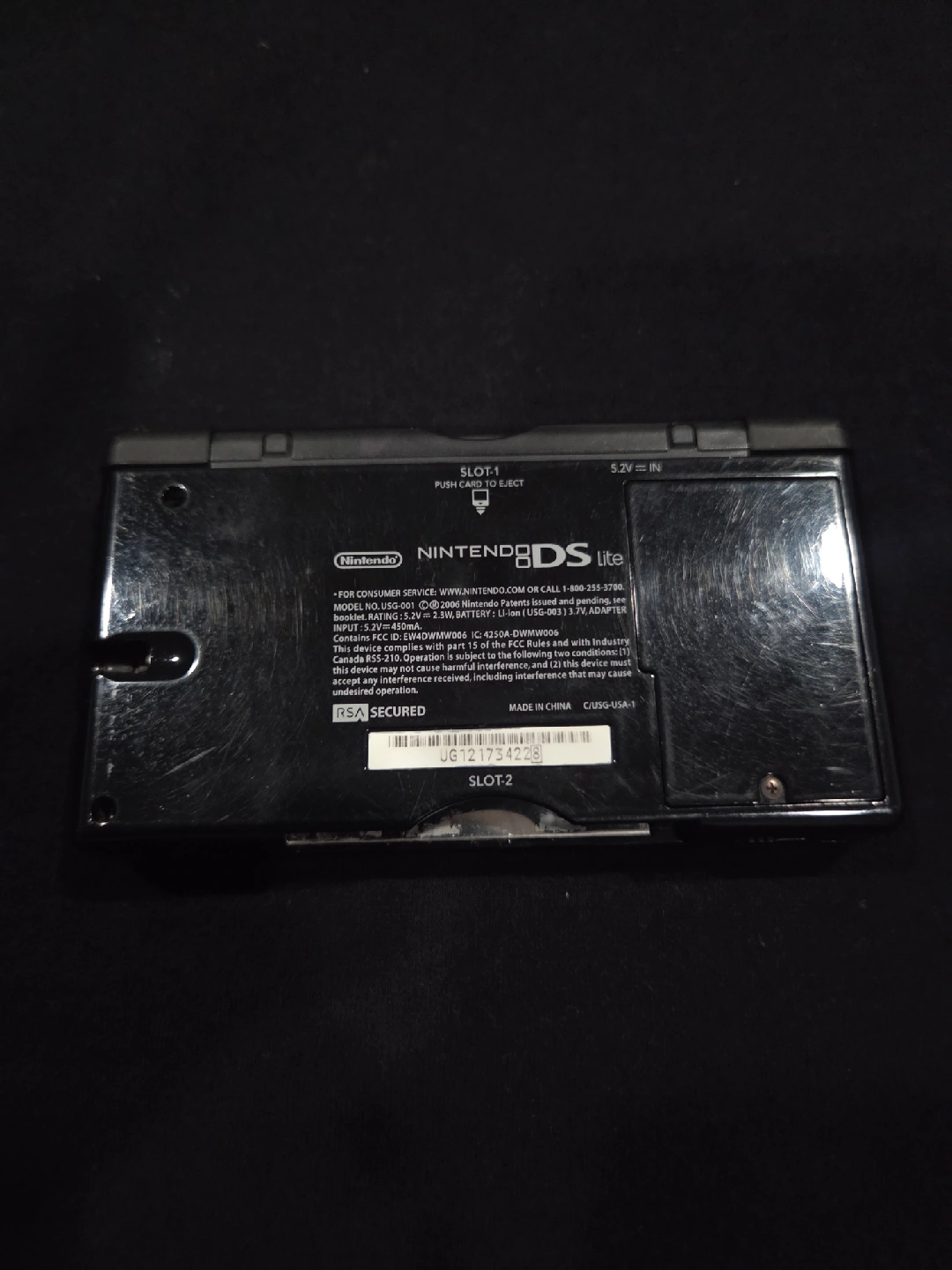 Selling a Nintendo DS Lite in black. It shows some signs of use, but it is still fully functional. Perfect for some old school gaming!