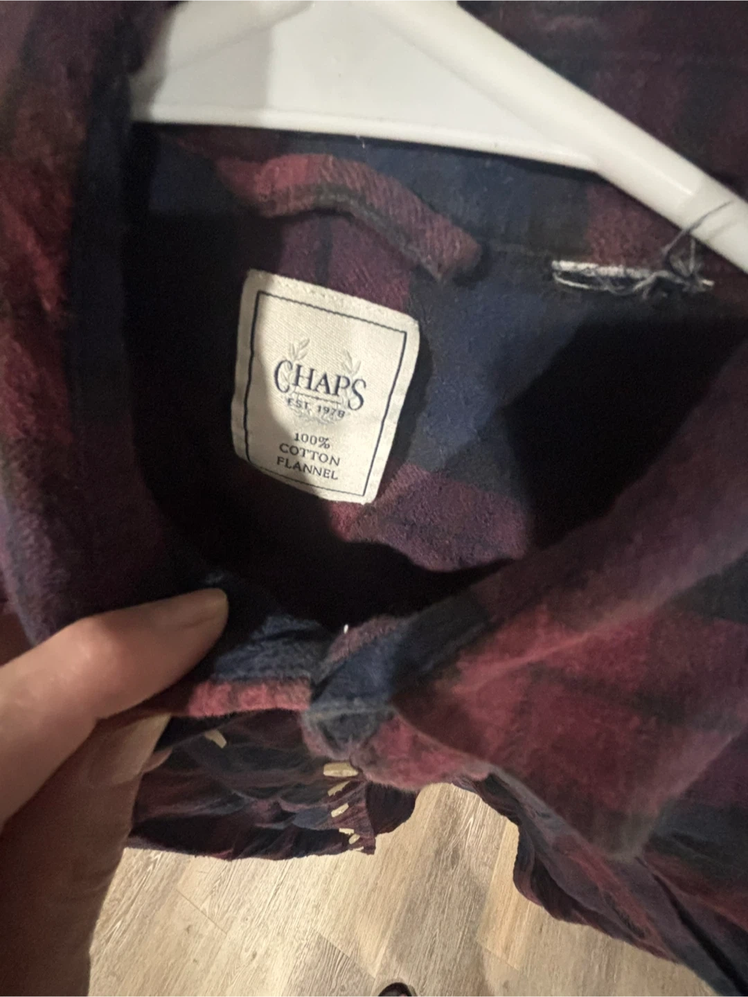 Selling a Chaps flannel shirt. It's a comfy 100% cotton flannel material and would be great for layering or wearing on its own