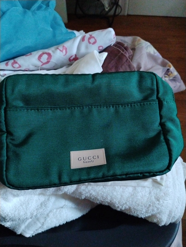60Selling a Gucci Beauty cosmetic pouch in a nice green color! It's perfect for storing your makeup and skincare essentials when you're on the go
