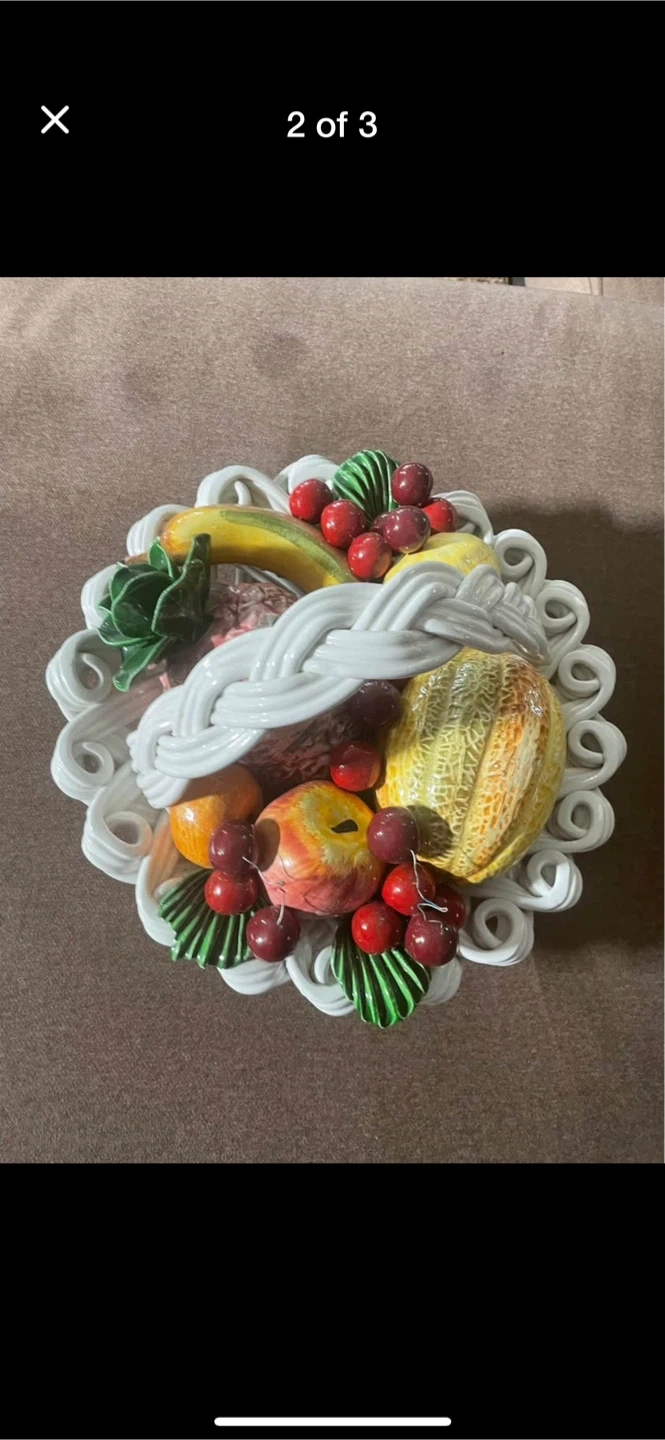 This is a beautiful ceramic fruit basket centerpiece. It's a great way to add a touch of color and style to your home. Perfect for any table or countertop!