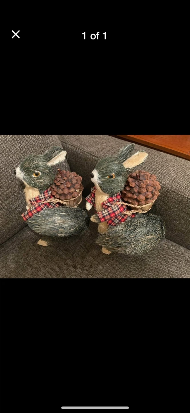 These cute little rabbits are ready to add some fall charm to your home! They each have a little pinecone on their back and a red and black plaid scarf. They are in great condition and ready for a new home