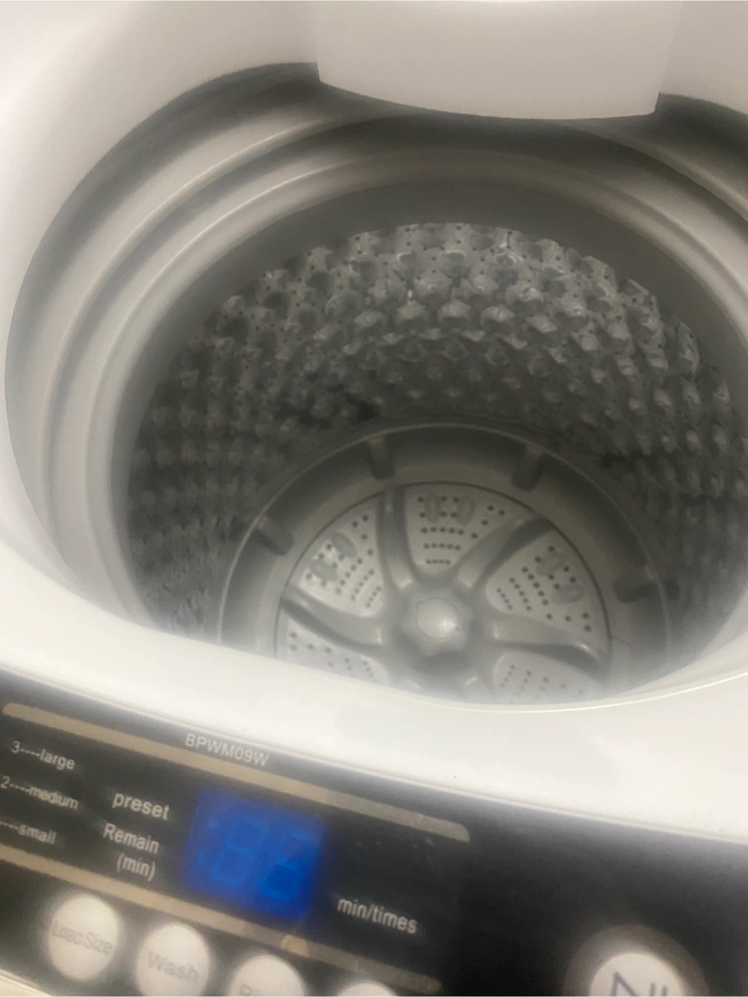 Selling a Black+Decker portable washer, model BPWM09W. It's in great condition and ready to use! Perfect for small spaces like apartments or RVs. It has multiple wash settings and is easy to hook up to a standard faucet with the wheel cart