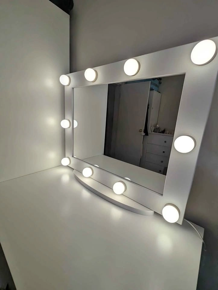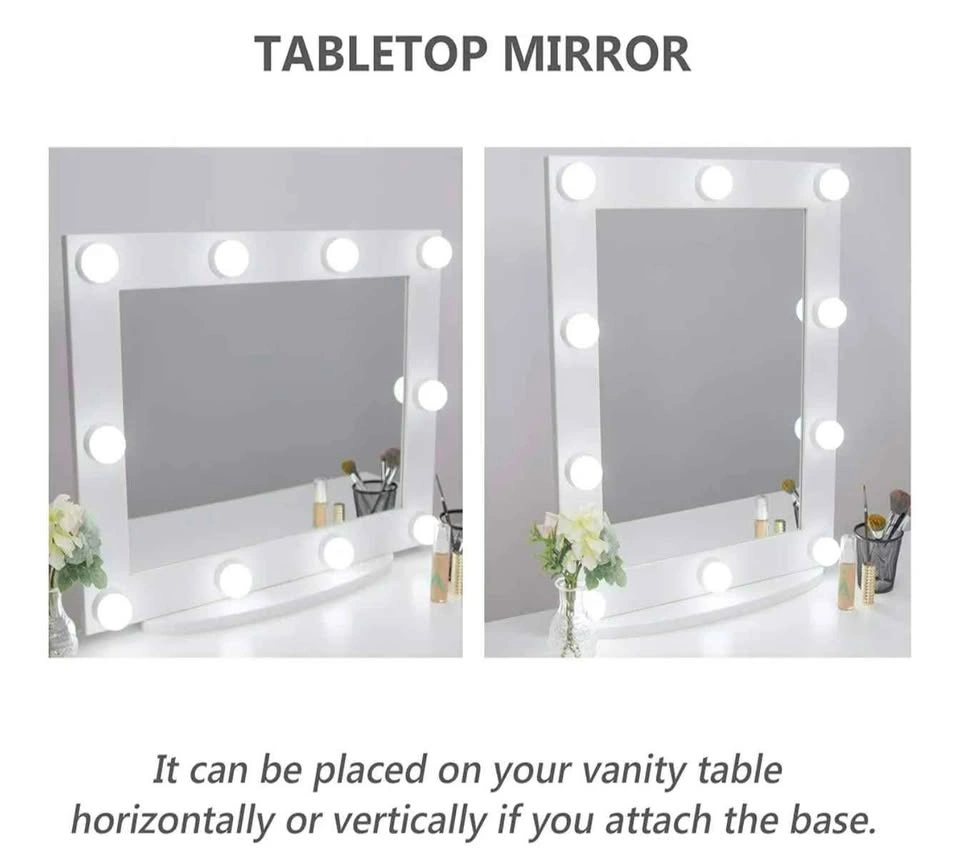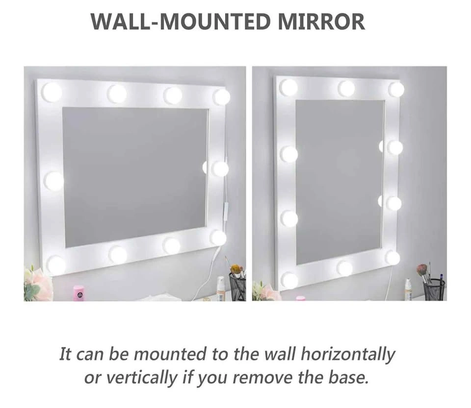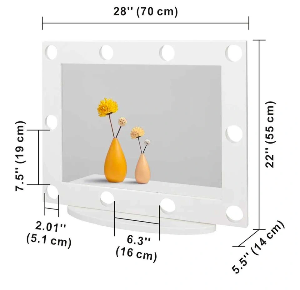 Waneway Vanity Mirror with 10 Pre-Drilled Holes Compatible with Hollywood Lights Kit, DIY Lighted Vanity Makeup Mirror with No Visible Cords, Tabletop or Wall Mount Touch on/off Adjustable dimming - increasing/decreasing the brightness by pressing longer