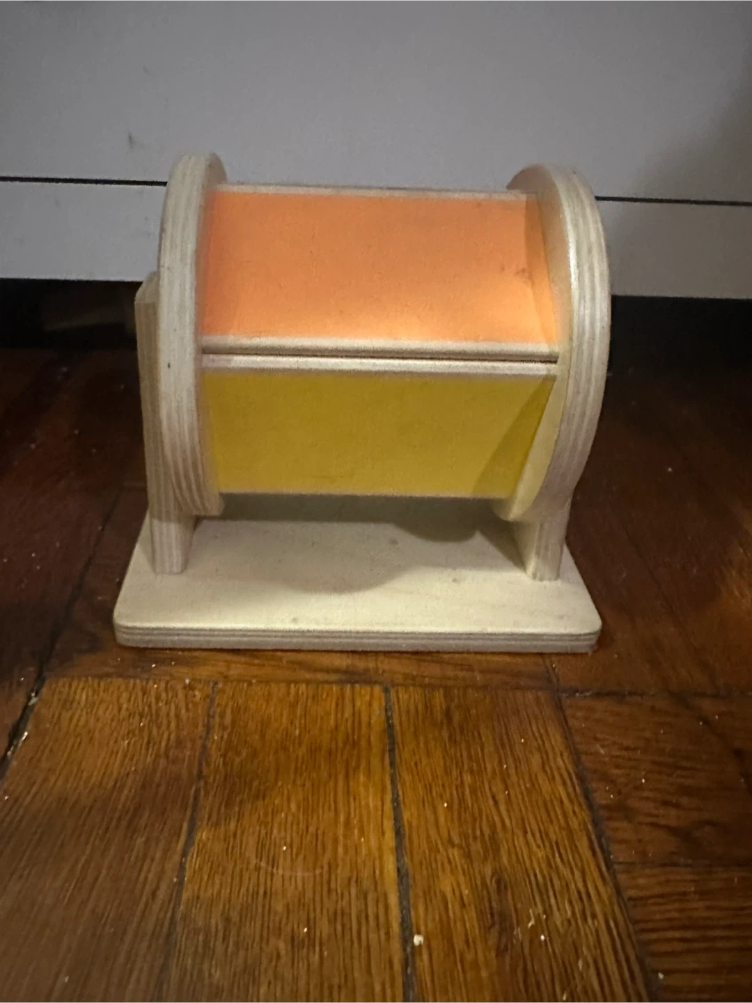 55I'm selling a wooden rolling drum toy! It's in great shape and perfect for little ones who love to explore movement and sound. The drum has different colored sections that create a gentle sound as it rolls. A fun and engaging toy for babies and toddlers!