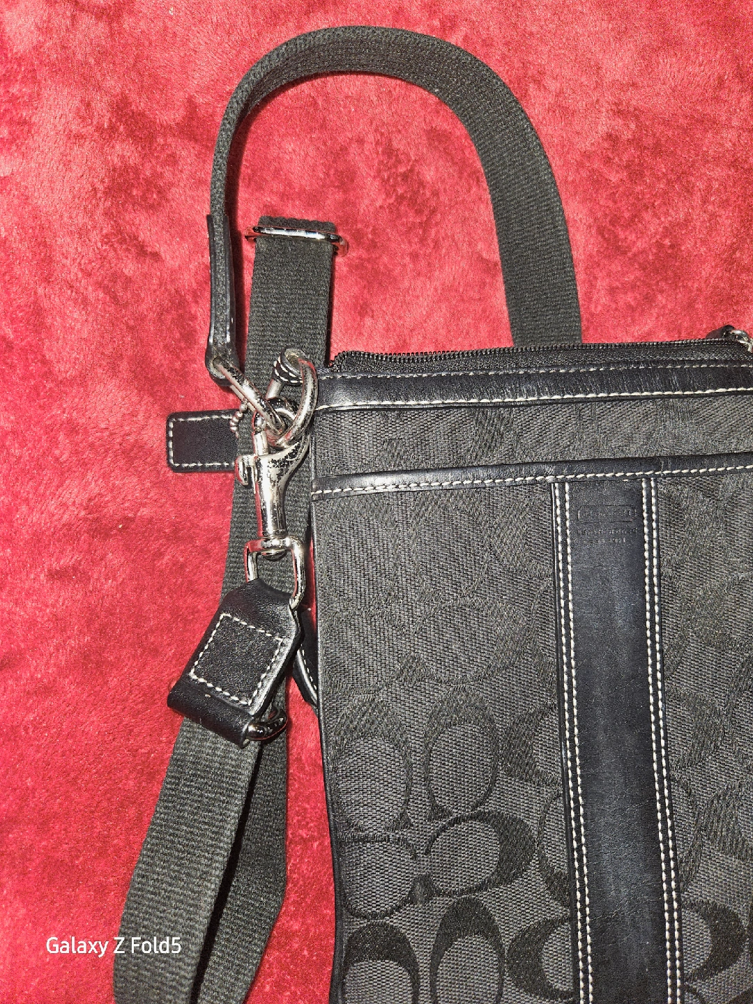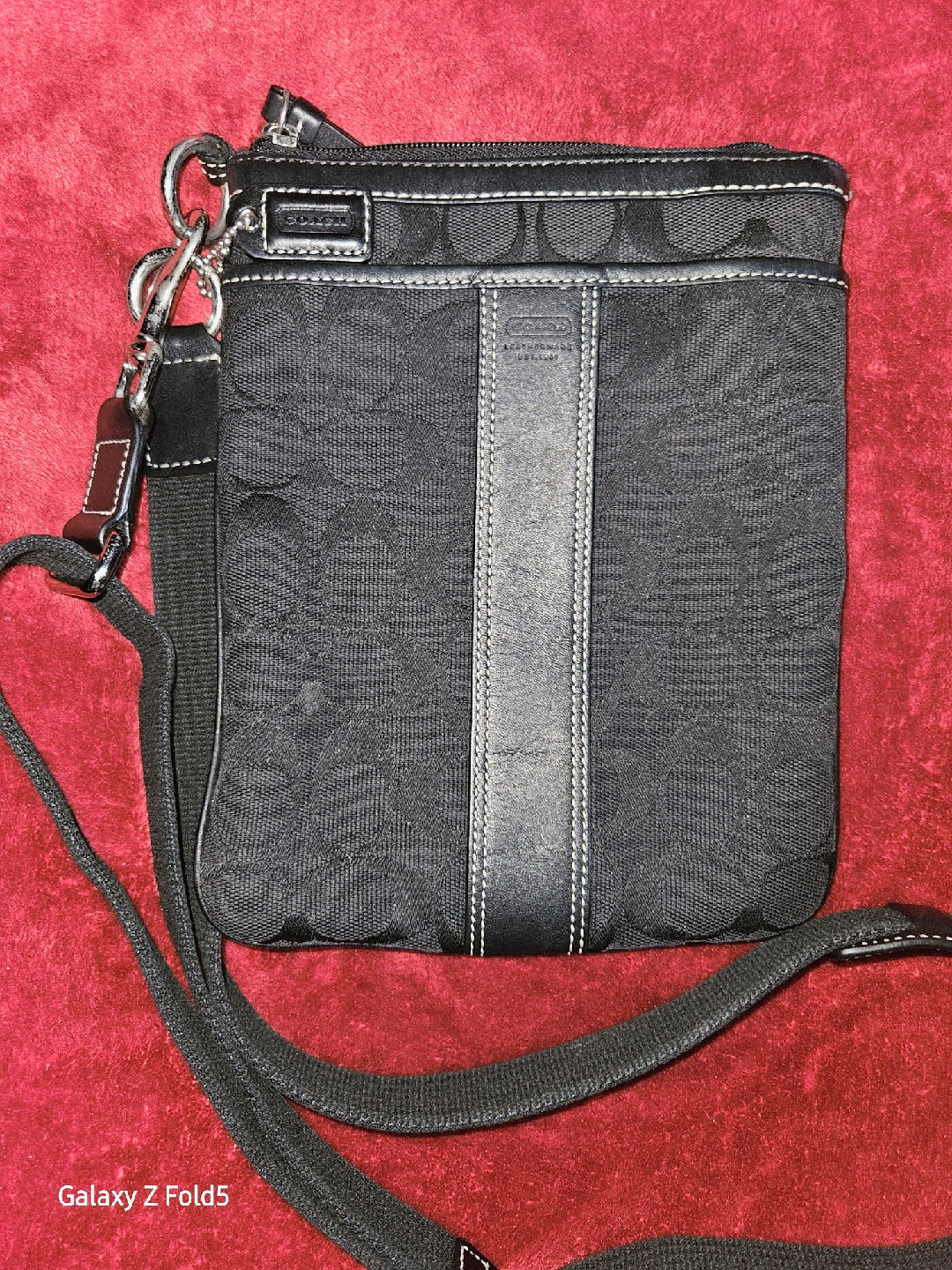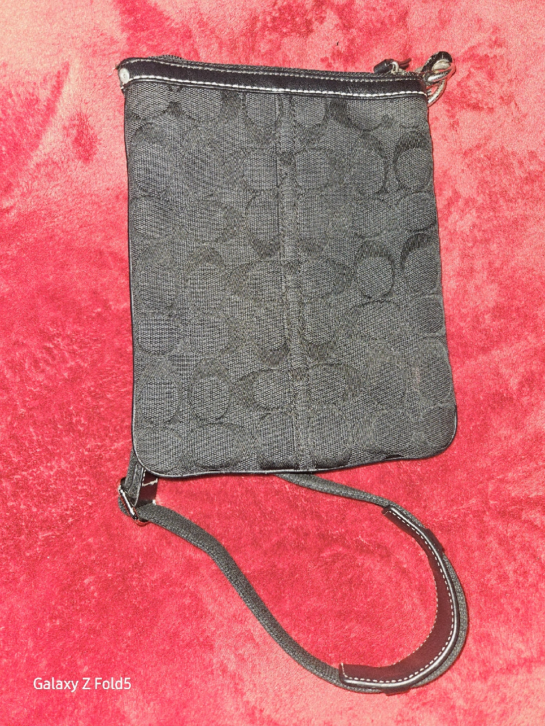 This is a Coach bag! It's a black crossbody sling bag with the Coach logo pattern. The bag is in great condition and ready for a new home. No. B0768-F06016