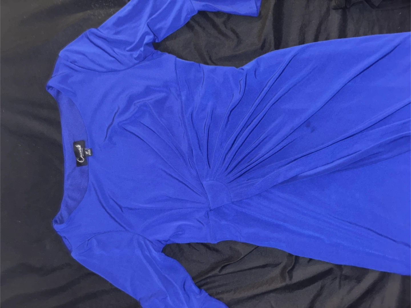 Selling a beautiful blue dress from Connected Apparel! The dress features a unique design and a flattering fit. It's perfect for any special occasion or a night out