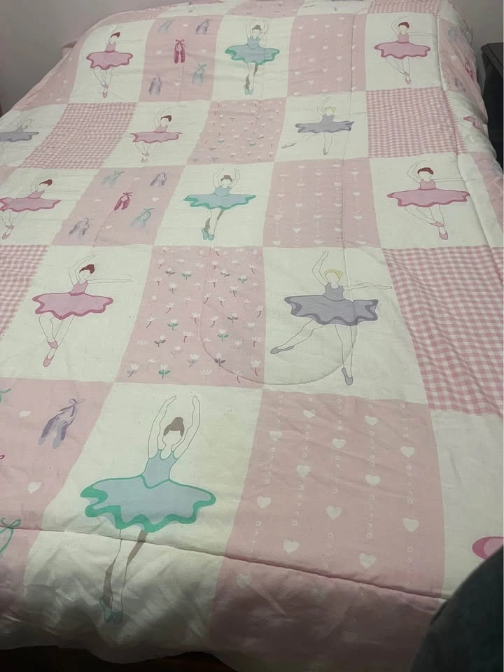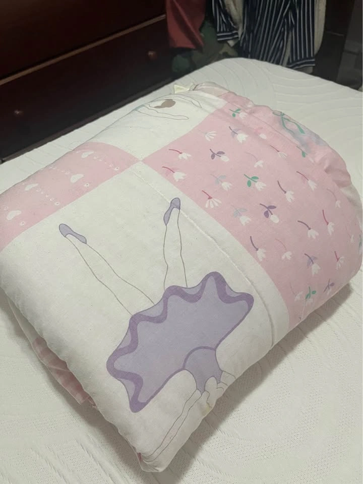 Pink and White Reversible Comforter Good Quality Twin Size Perfect for Spring