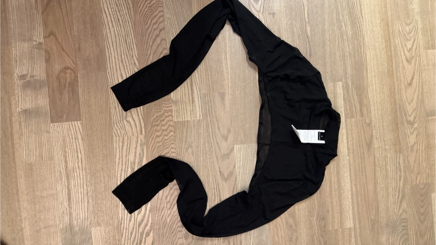 Sellingaa new black mesh long sleeve top in size small. It's in great condition and perfect for layering or adding a touch of edge to your outfit!