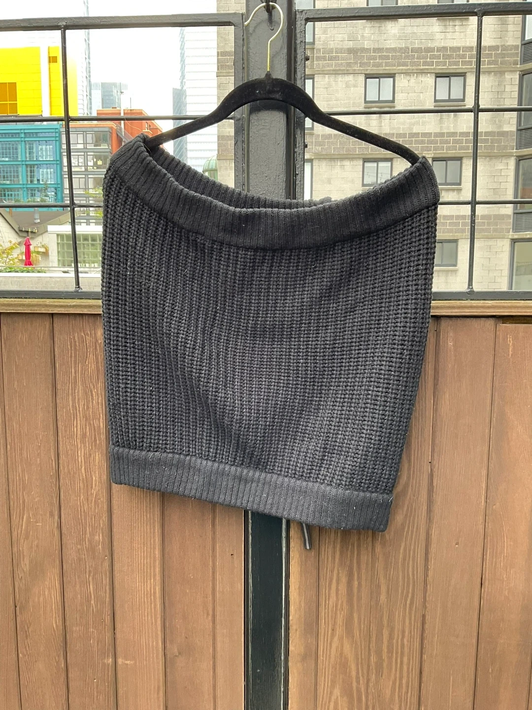 Selling a Lululemon knit tube with zipper in black. It's a stylish and comfortable piece to add to your wardrobe. Perfect for casual outings or dressing up. The material is soft and cozy, making it great for cooler weather. This piece is in great condition and ready for a new home!