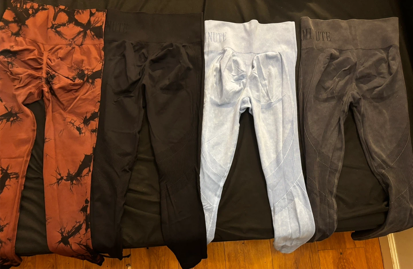 Selling a bundle of four MINUTE leggings in size small! The colors include a tie-dye brown, black, light blue, and charcoal gray. They're in great condition and ready for a new home!