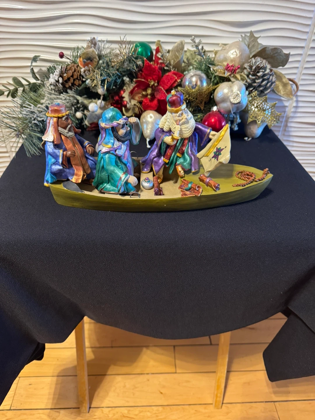 Three Kings in a boat. It's a beautiful decorative piece, perfect for adding a touch of elegance to any room. The colors are vibrant and the details are intricate, making it a unique and eye-catching item