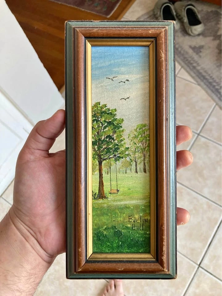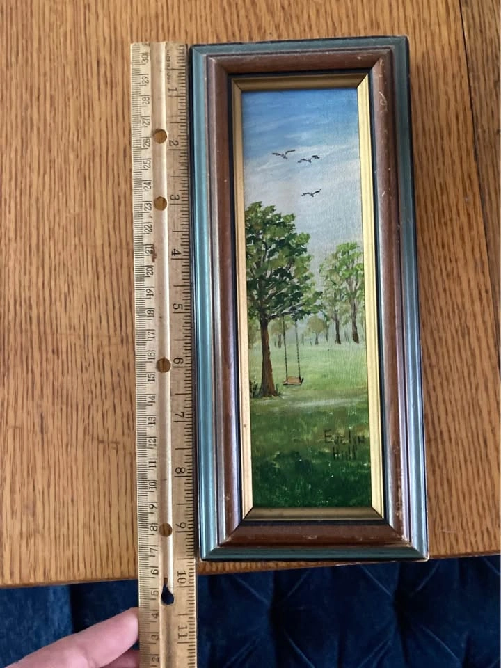65Small framed painting of peaceful park scene 4x9.5. Pickup in Jefferson / portage park area