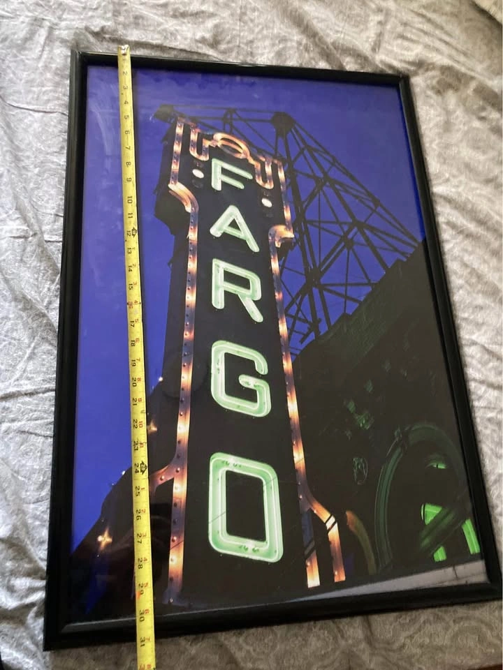 65Framed poster of the Fargo theatre in Fargo, ND. Great for film fans as well as fans of theatre, or for fans of Fargo! Frame measures about 21w X 31h