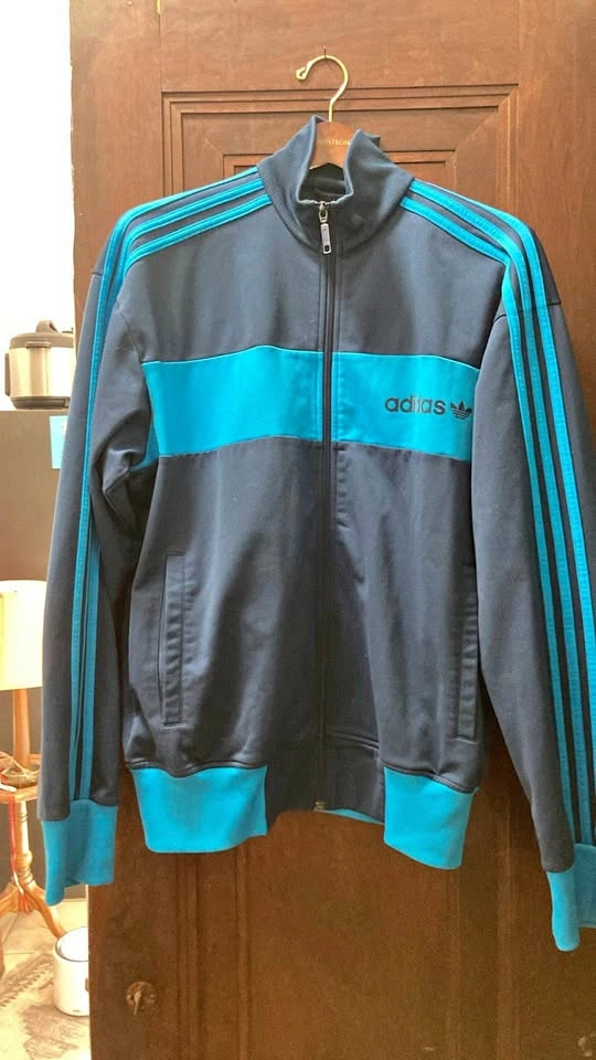 65Vintage Adidas blue track jacket. Minimal wear to the zipper. Pockets on either side, logo across chest. Pickup only in Jefferson / portage park area
