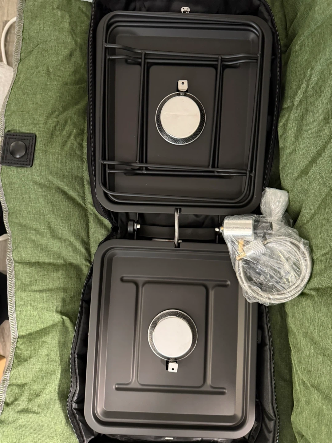 Selling a Cricosner portable dual-burner camping gas stove in great condition! It comes with its original box and all components are included. This stove is perfect for camping trips and outdoor cooking. It's lightweight and portable, making it easy to carry and set up wherever you go