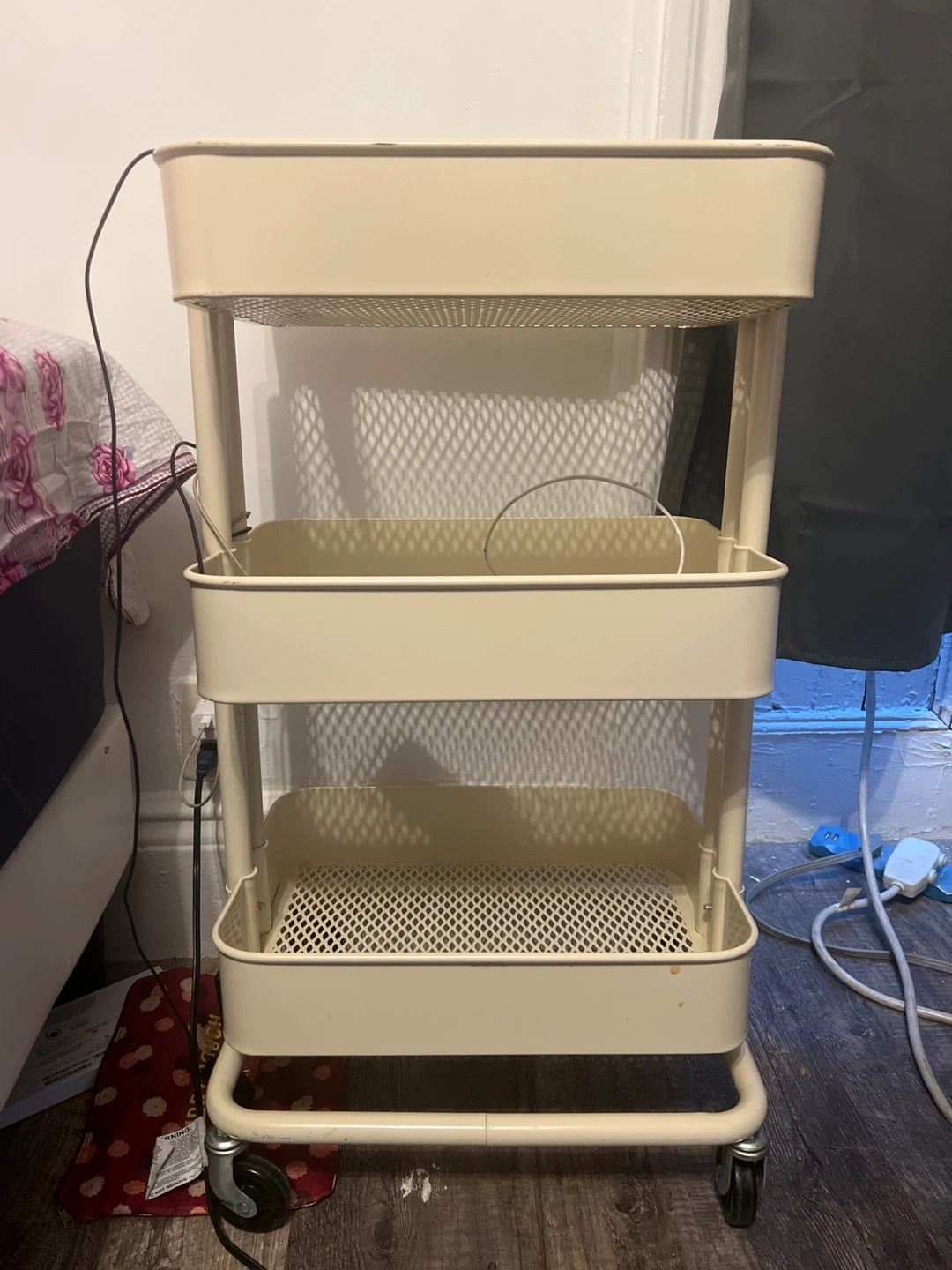 54Selling a cream-colored IKEA Raskog utility cart! It's in good condition and super handy for organizing things around the house. Great for kitchens, bathrooms, or even as a bedside table on wheels