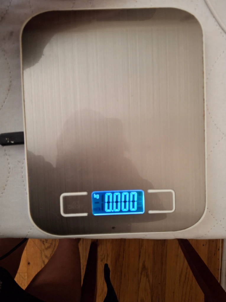 Here's a digital kitchen food scale in good condition. It's perfect for accurately measuring ingredients for baking or cooking. The scale features a clear digital display and is easy to use. It's also lightweight and portable, making it simple to store when not in use