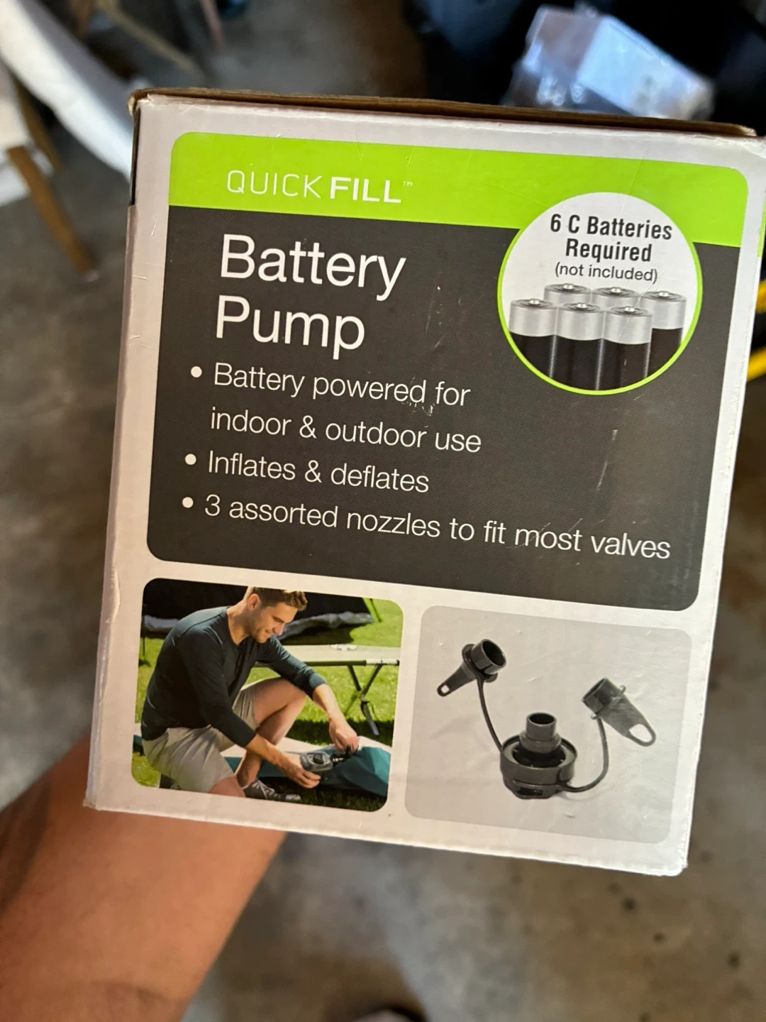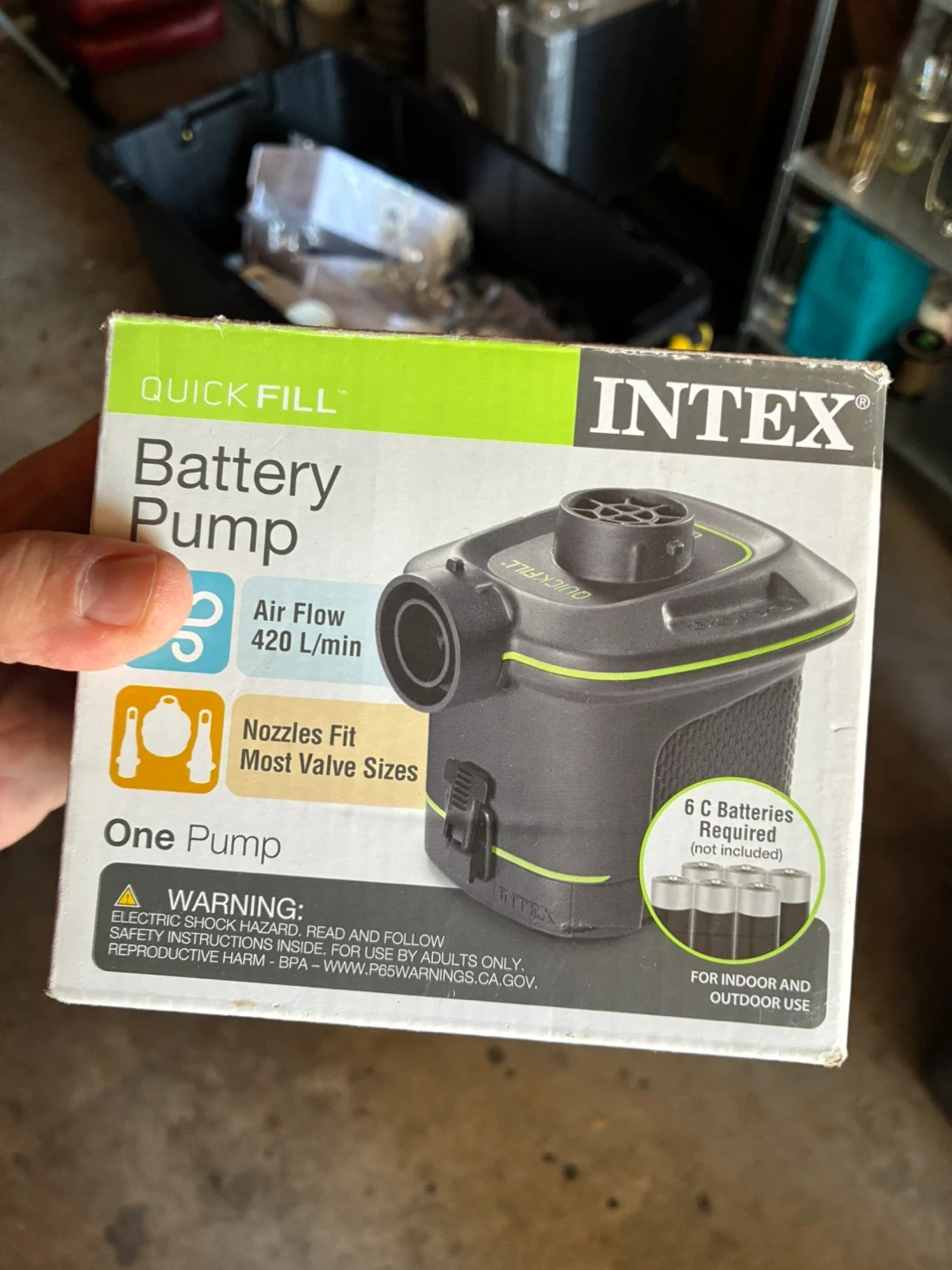 Intex Quick Fill Battery Pump - Like New Selling an Intex Quick Fill Battery Pump! It's battery powered for indoor & outdoor use and inflates & deflates. It also comes with 3 assorted nozzles to fit most valves. Air Flow is 420 L/min. Requires 6 C batteries (not included). Pick up in Norridge Price $10