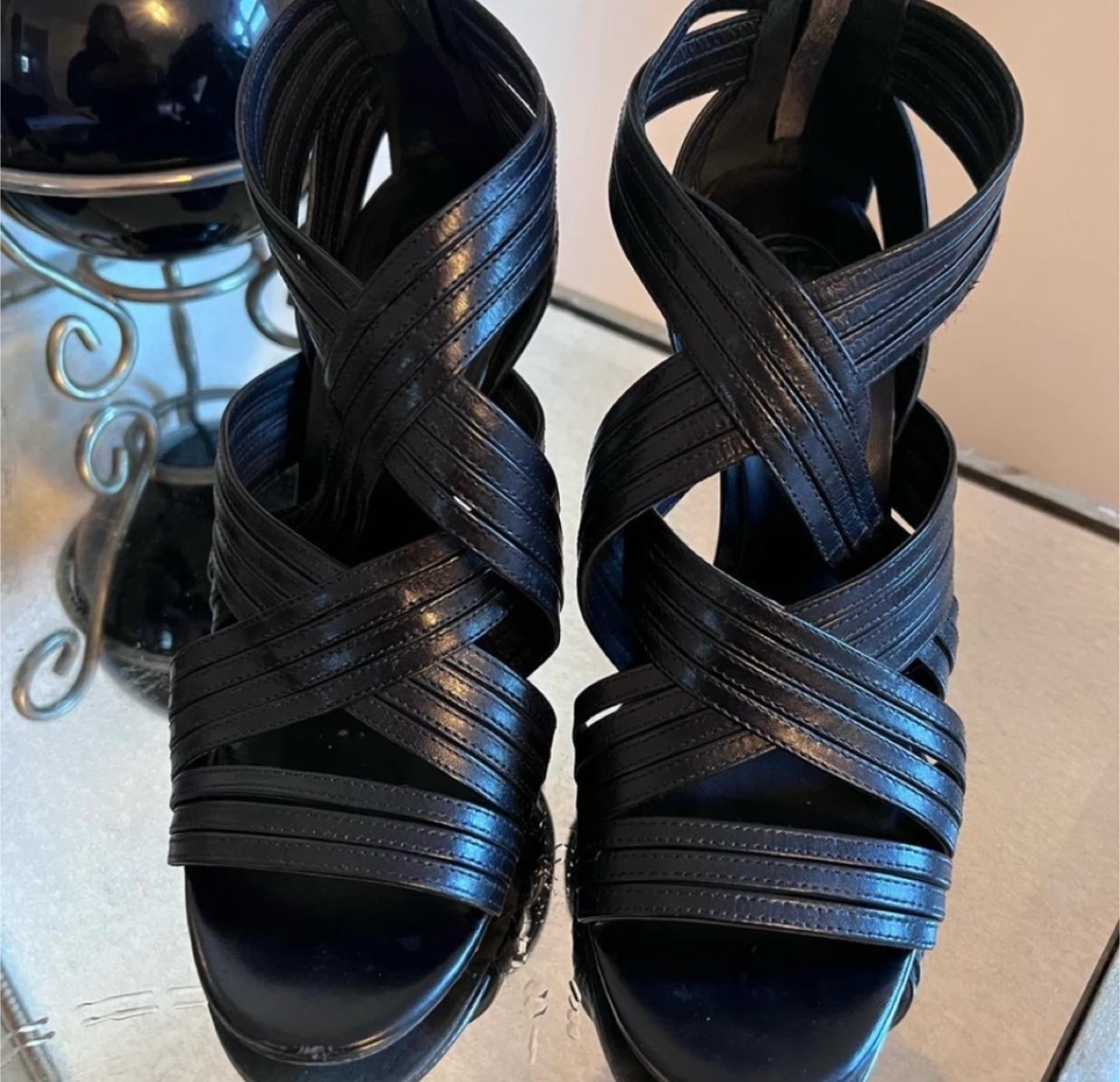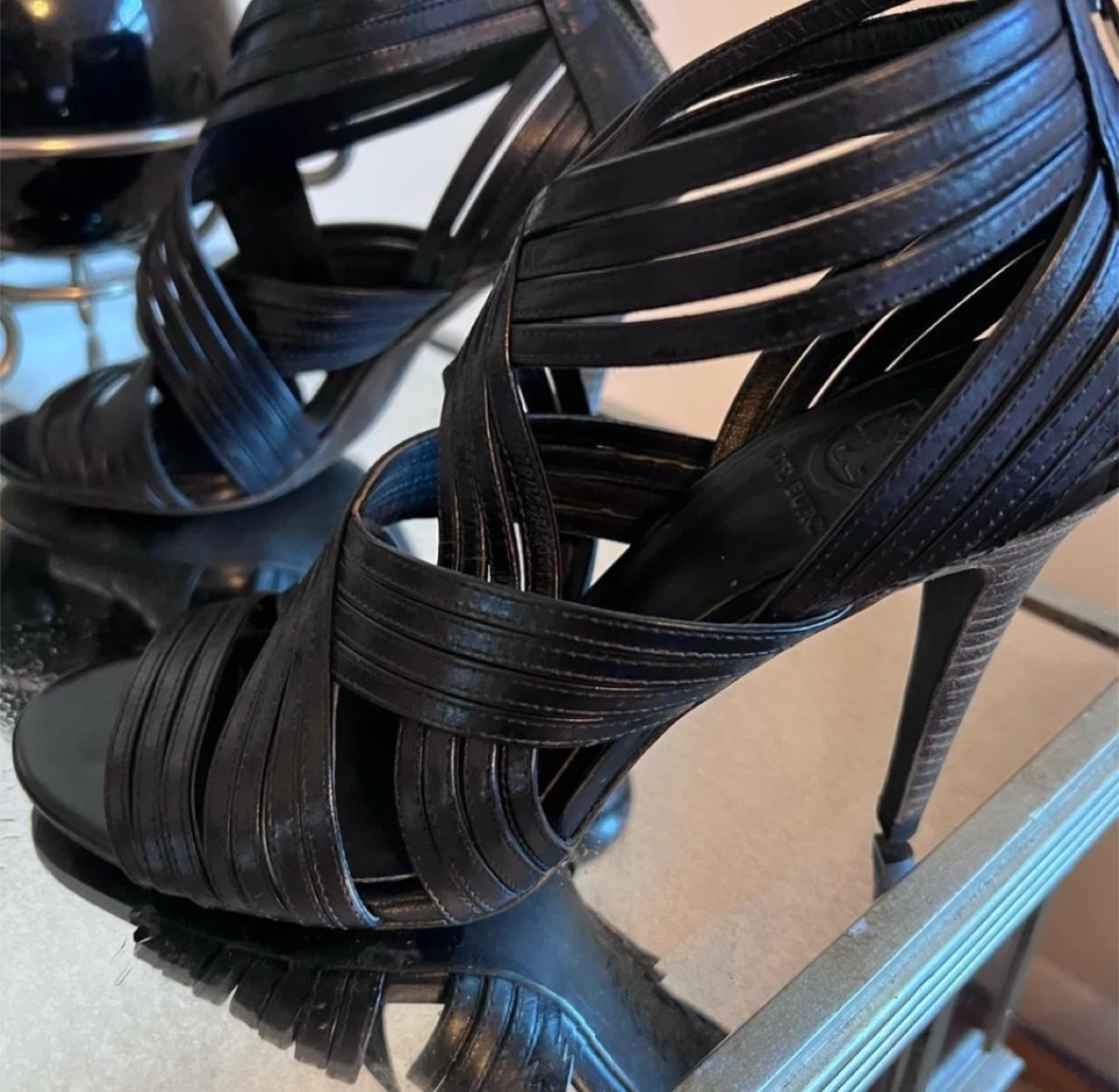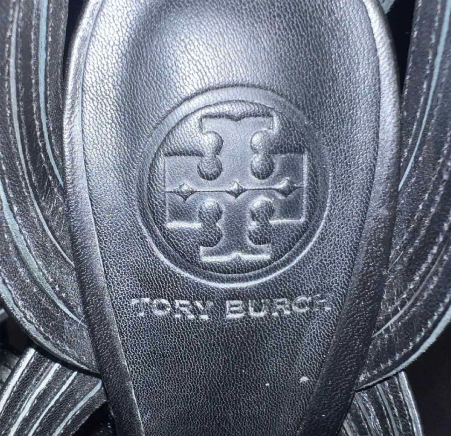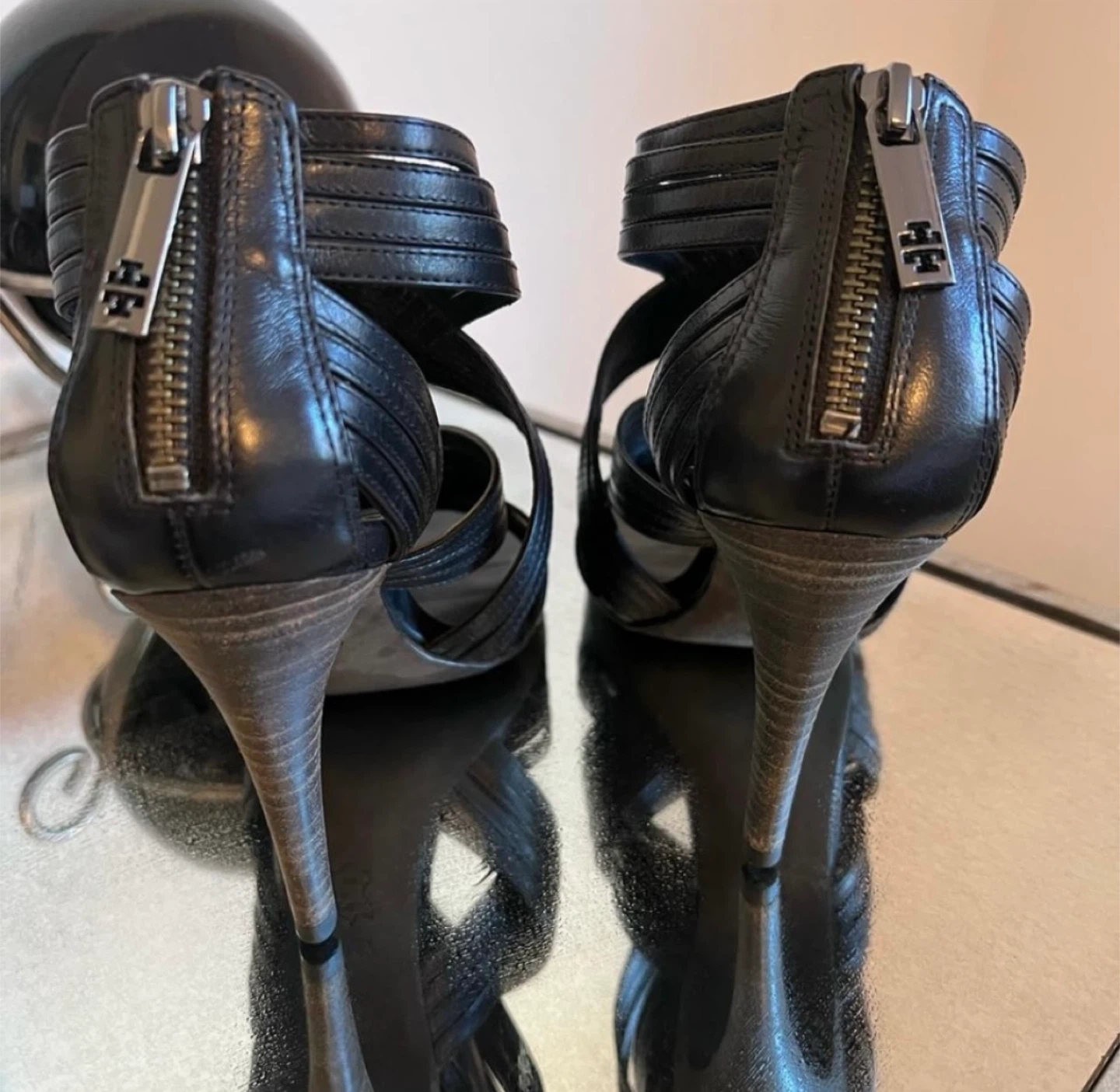 15Selling a pair of Tory Burch black leather heels. They feature a stylish strappy design and a zipper closure at the back. Great for adding a touch of elegance to any outfit!