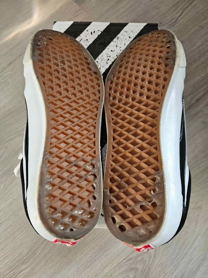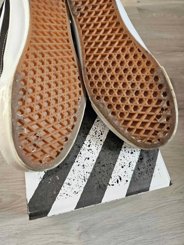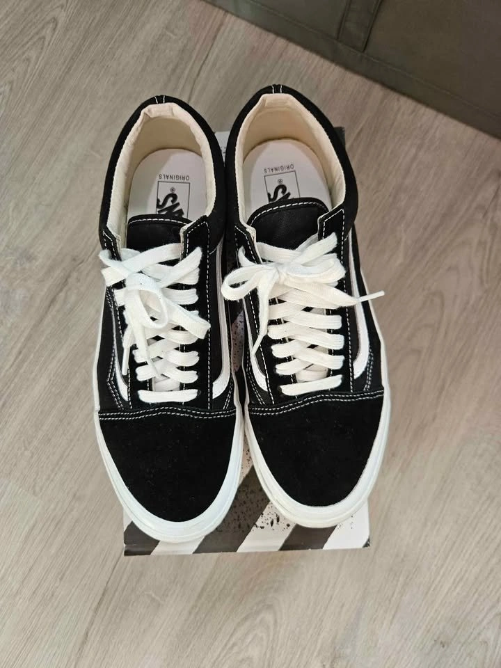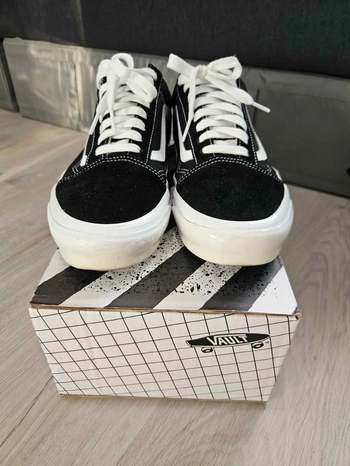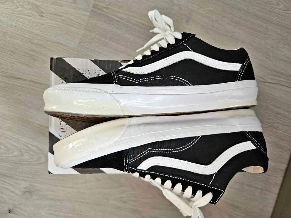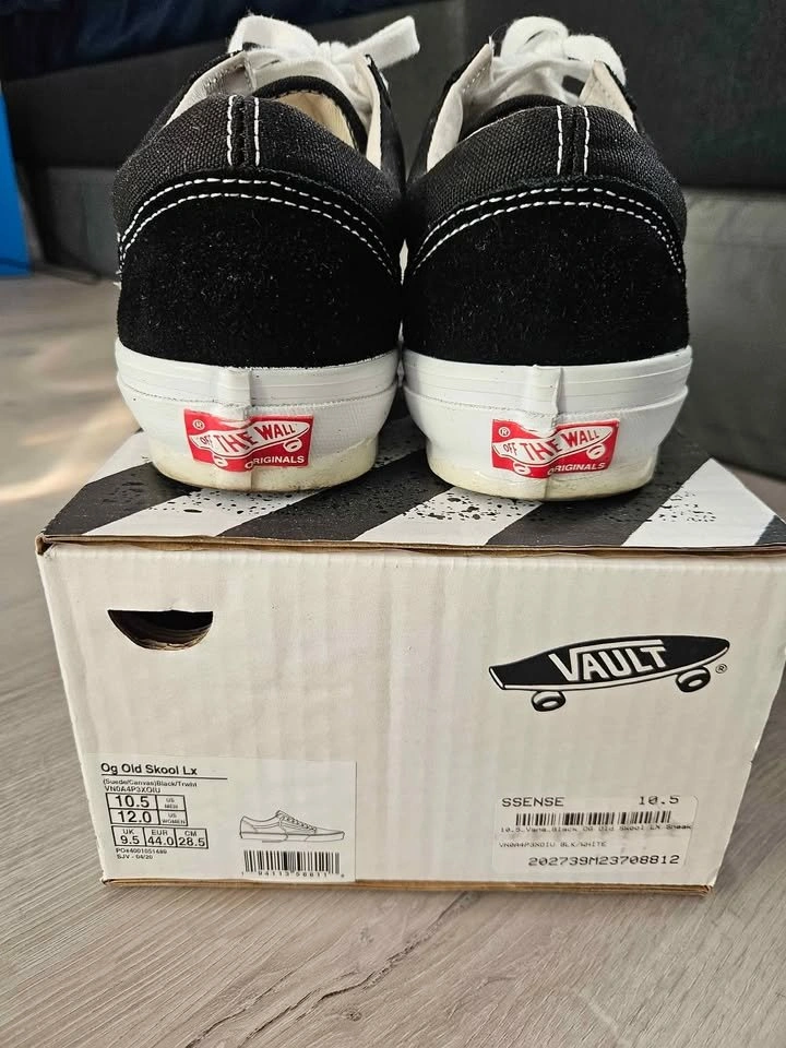 Vans Black OG Old Skool LX Sneakers Bought from SSENSE for $124.30 after tax & shipping. Been sitting in my closet after wearing it once or twice, doesn't suit my dressing style. Selling for $70 9.5/10 condition. Shoe goo applied around the edges to protect and keep shoes clean, can remove it like a sticker, doesn't leave any mark. Pick up at Bartley Dr/Tisdale Ave.