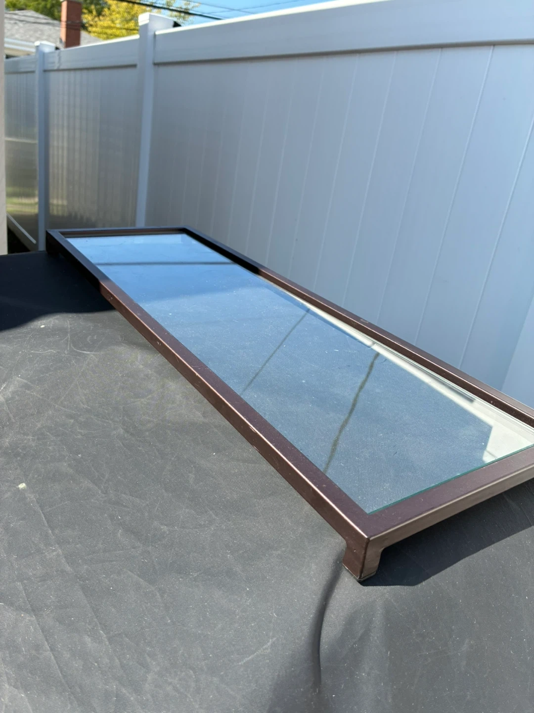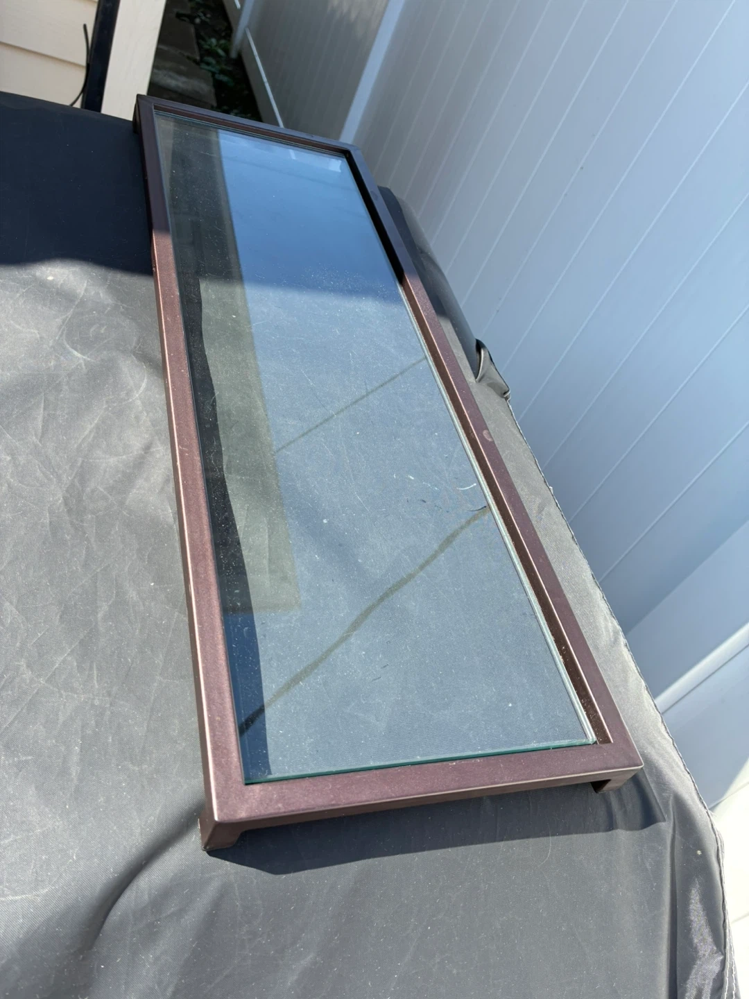 Brown Framed Glass Shelf Selling a brown framed glass shelf. It's in great condition and ready to add a touch of elegance to your space! Perfect for displaying your favorite items or adding extra storage Pick up in Norridge Price $10