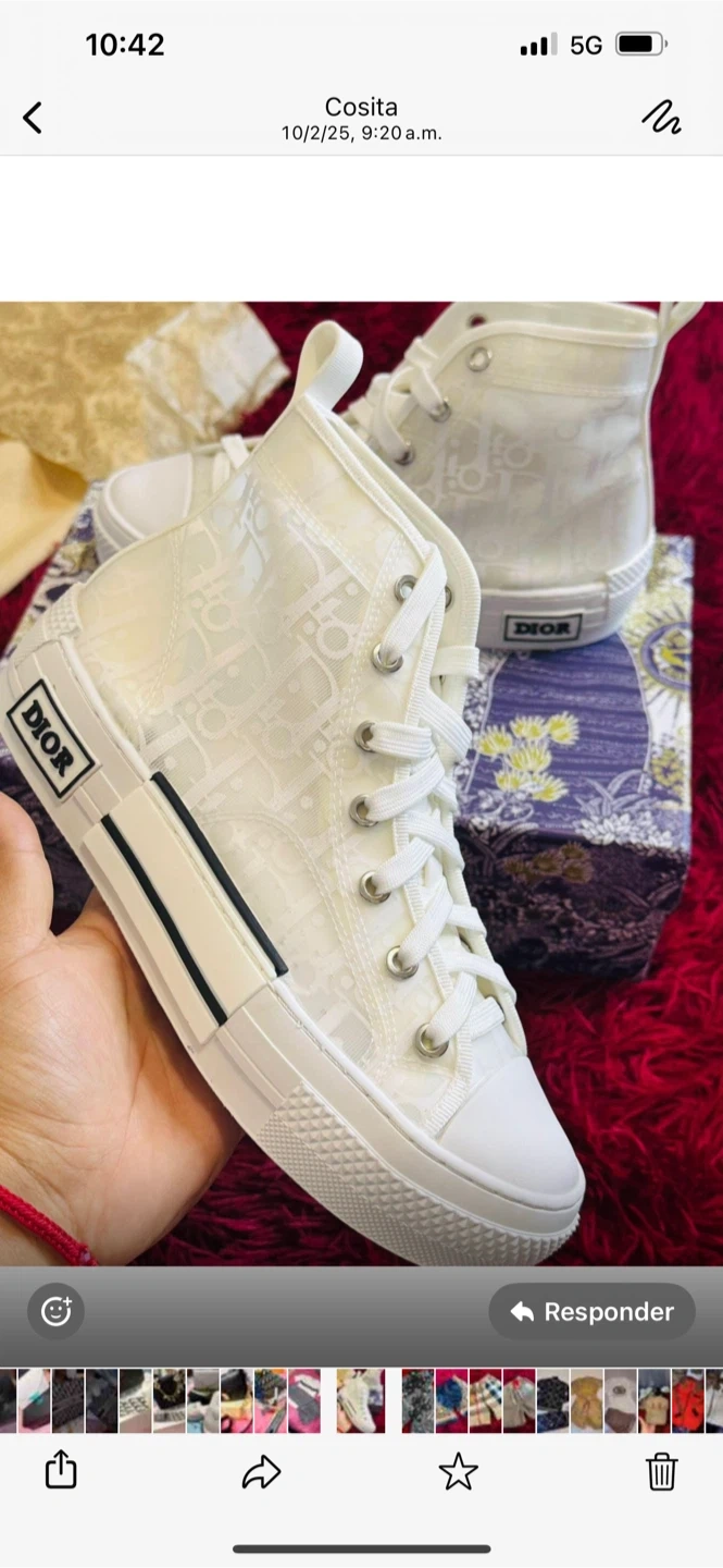 Selling a pair of Dior high top sneakers. They feature the Dior logo throughout the design. Great for adding a touch of luxury to your everyday style!