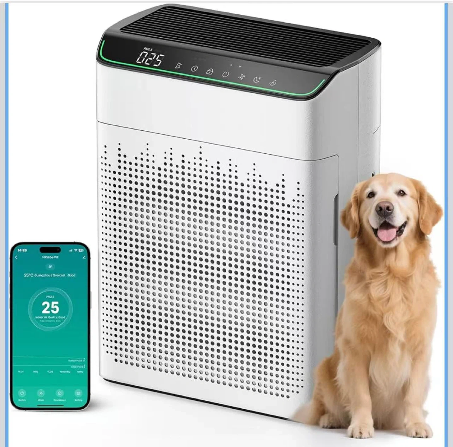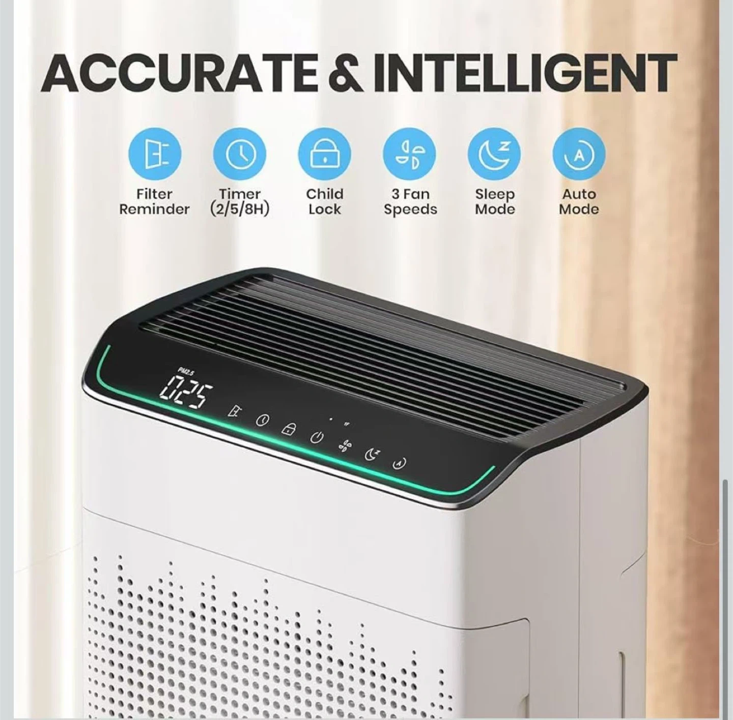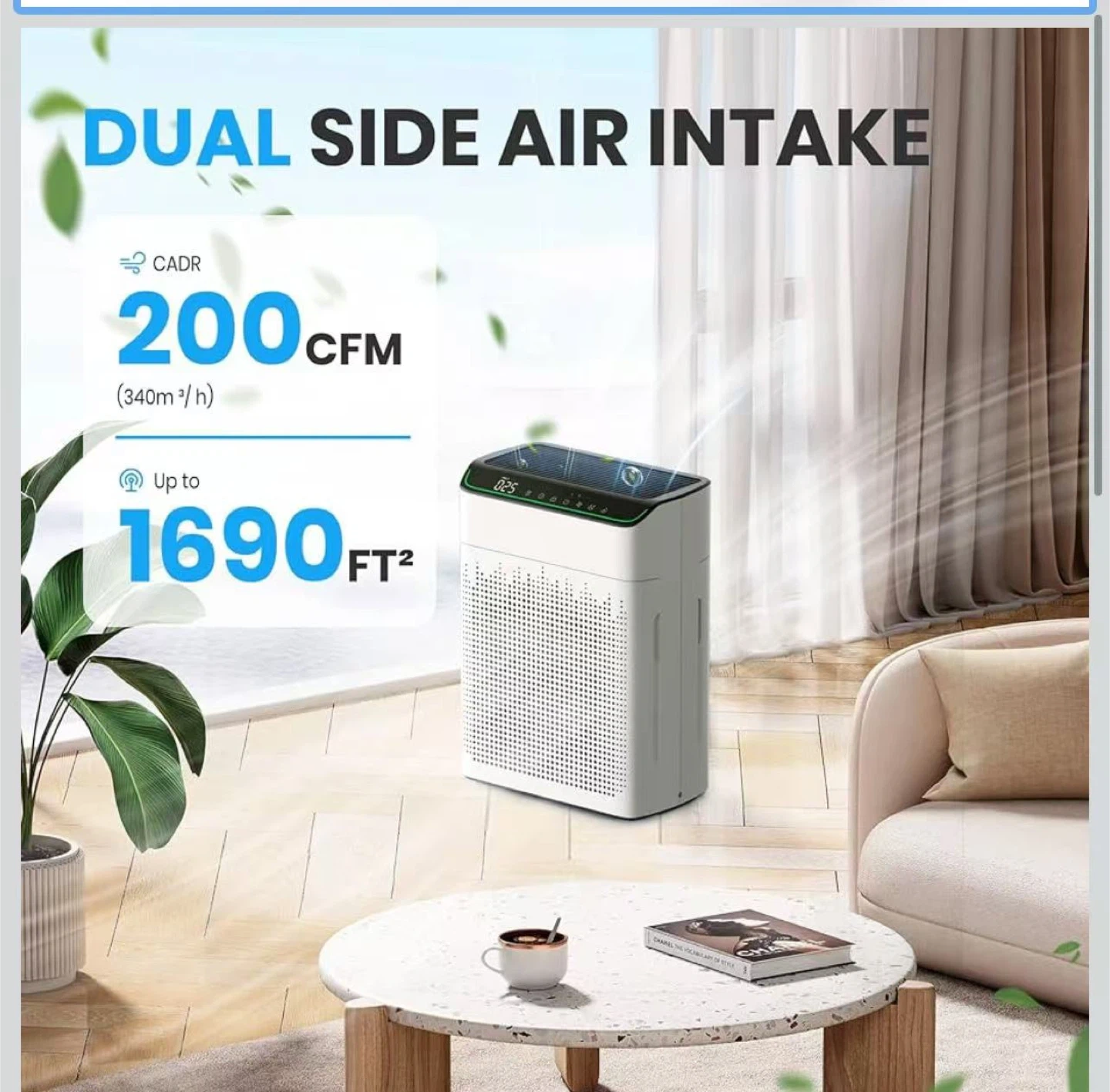 Air Purifiers for Home Large Room Up to 1690 ft² Double-sided Air Inlet Smart WiFi Alexa Compatible PM 2.5 Air Quality Monitor for Smoke and Odor 23dB Quiet 1 Pack+2 Pack HEPA Filters White